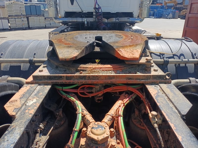 Description/extras: PTO control panel, Turntable, Battery Isolator, Weight scale, Tipper and Floor pressure select, LP 16mm D190kN Jost, Air Conditioning, Power windows, SRS, Climate control, Alloy wheels, Central locking, rear wheel tyre has debeaded.