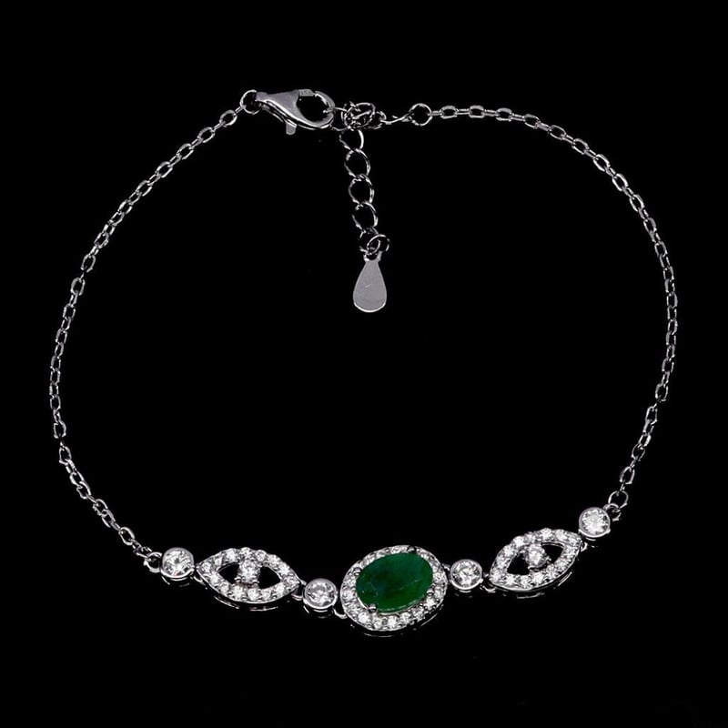 NATURAL EMERALD BRACELET Natural Emerald Bracelet. Made In Solid Sterling Silver And Plated In14K White Gold. Features Natural Green Emerald And Sparkling Czs. Bracelet Measures 8 Inches. Condition: Good - Refer Images 0488258+23