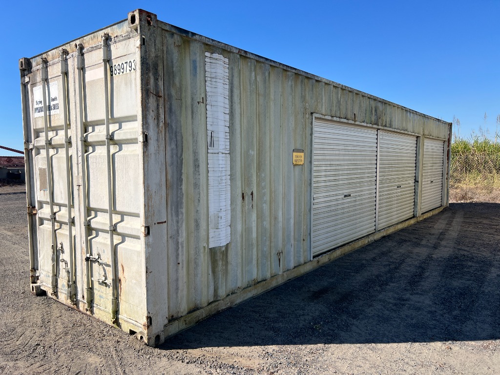 40ft Container - 3 x Roller Doors on one side - Timber Floor - Rust holes in the roof - 3 x shelving Units Inspection Recommended SOLD AS IS Location: Onsite Mackay, QLD Contact: Mark - 0437 318 344 Loading Arrangements can be made on Site.