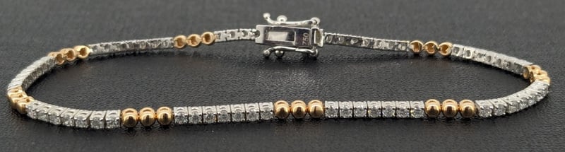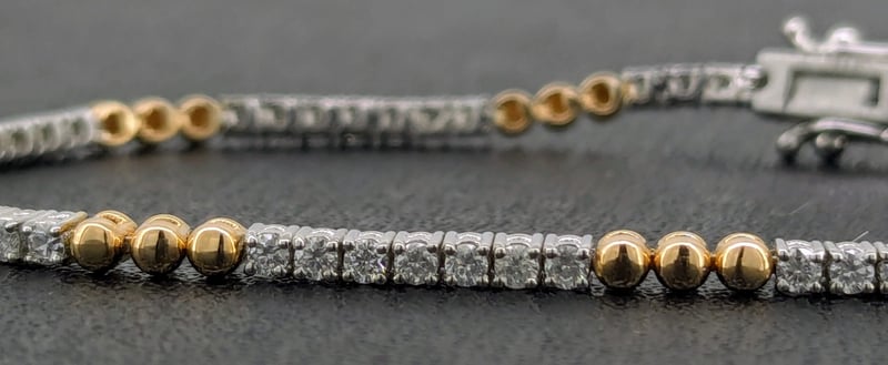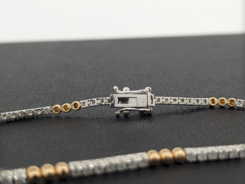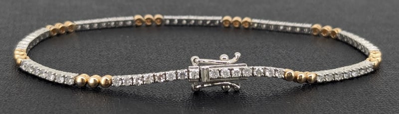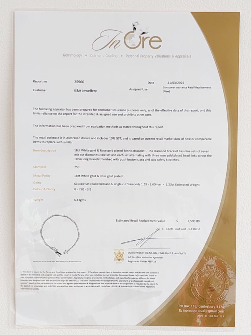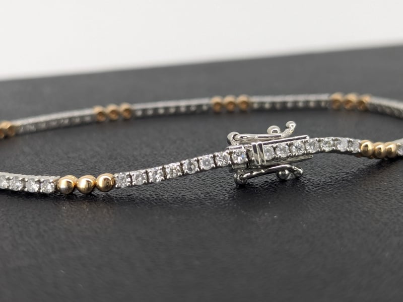 The Diamond Bracelet Has Nine Sets Of Seven Mix Cut Diamonds, Claw Set And Each Set Alternating With Three Rose Gold Plated Bead Links Across The 18Cm Long Bracelet, Finished With Push Button Clasp And Two Safety 8 Catches