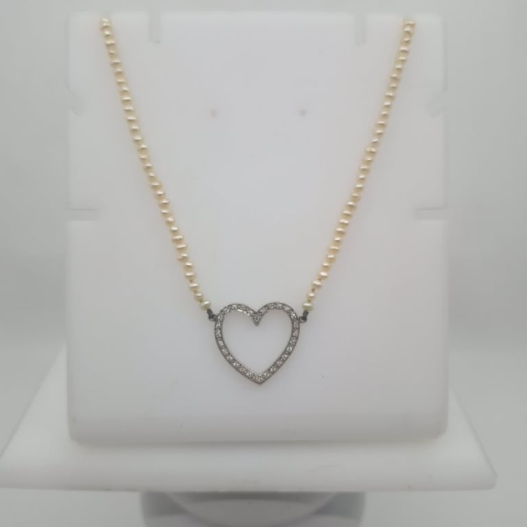 14K PERAL NECKLACE & DIAMOND HEART PENDANT Total Item Weight: 10.13g Length: 45.00cm Markings: 14K 585 Condition: Good - Refer To Images VAULT 586134+5