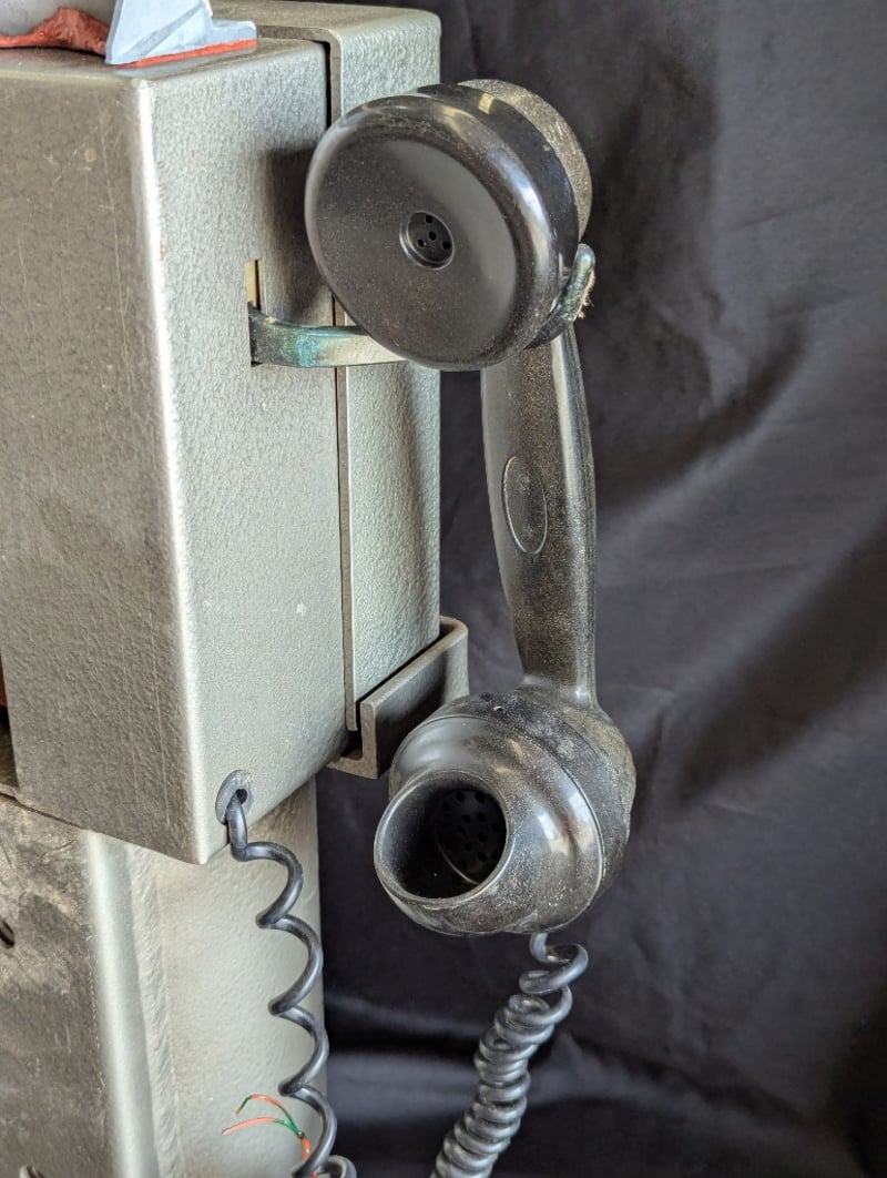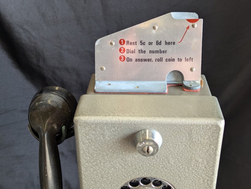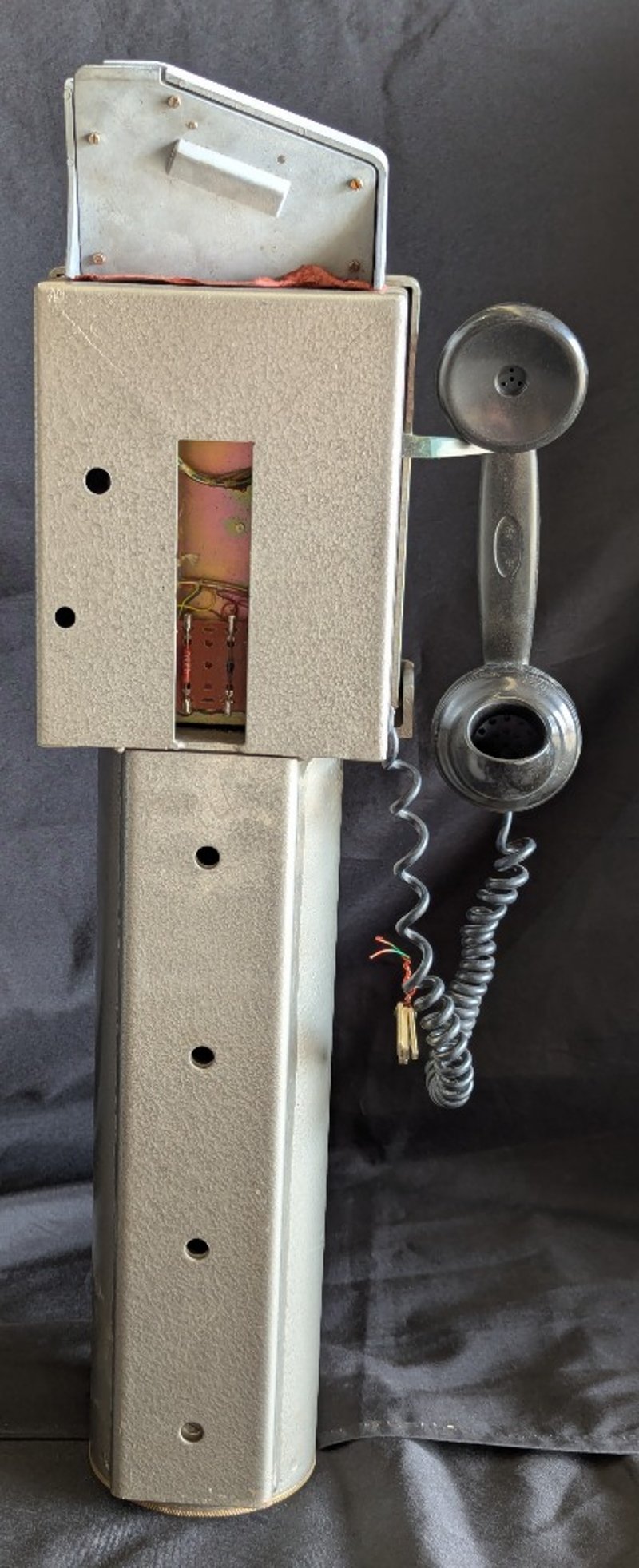 PILLAR STYLE PAYPHONEMetal Construction, Rotary Dial, Wired Handset, Handset Mount On Side, Includes Set Of Three KeysItem Size: 67cm H x 22cm W x 14cm DCondition: Very Good