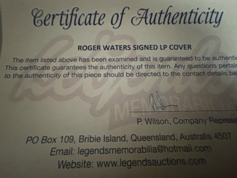 Pink Floyd'S Roger Waters Personally Signed 'The Dark Side Of The Moon' Lp. Pink Floyds Most Popular Album, Dark Side Of The Moon Broke Records For The Longest Number Of Weeks In The Charts And Is One Of The Biggest Selling Albums In Music History. Waters, A Foundation Member Of Pink Floyd Is One Of Music'S Greatest Guitarists. The Lp Is Custom Framed. Measuring X , This Is Ready To Hang. The Item Is Accompanied By A Certificate Of Authenticity.