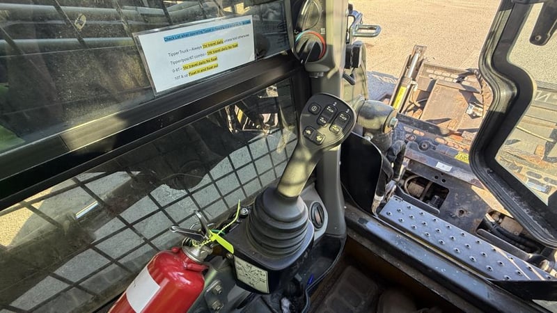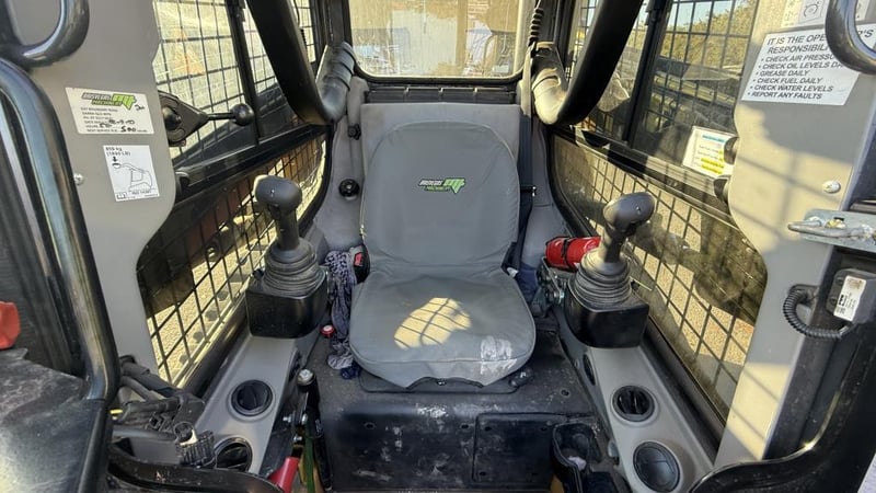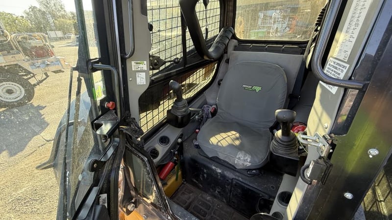 Description: Rubber Tracks, R.O.P.S/F.O.P.S Enclosed Cab with Air Conditioning, Joystick Pilot Controls, Hydraulic Quick-Attach System, High-Flow Auxiliary Hydraulics, Self-Leveling Bucket, LED Work Lights, Emergency Stop Button.