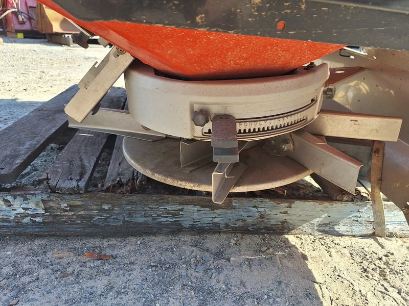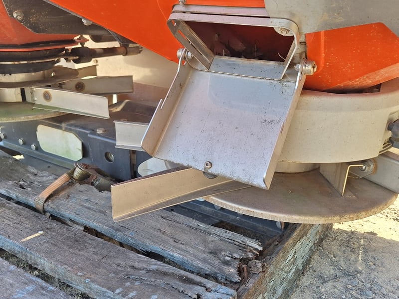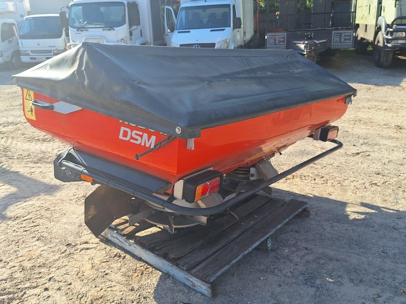 Description: PTO driven Granule Spreader With RotaFlow spreading system: The DSM uses a system where fertiliser granules are already rotating before hitting the disc vanes, reducing fragmentation and improving spread uniformity — especially helpful on slopes.
