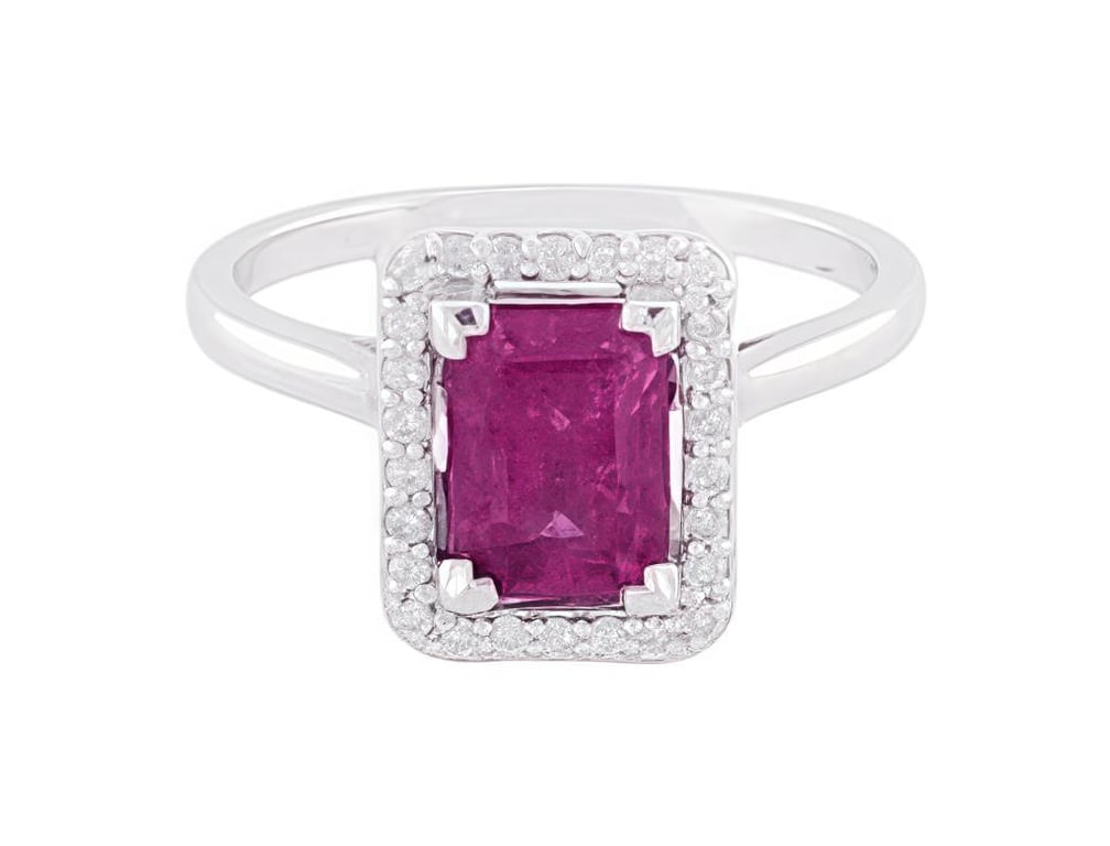 9CT WHITE GOLD RUBELITE AND DIAMOND RING Date : 26 -03-2025 Category: Ring Comment: White Gold 9K Natural Tourmaline (Rubellite) : 1.03 Carat Natural Diamond : 0.20 Carat Item Weight : 3.08 G Condition: Good - Refer Images 253130488285+253130