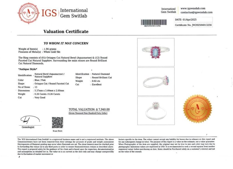 This valuation has been conducted by an independent third-party professional. The valuation amount is an assessment by the issuing valuer and does not reflect the auction value of the item.
