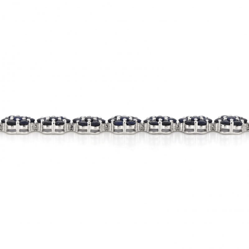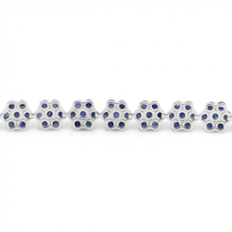 14K WHITE GOLD, BLUE SAPPHIRE, FLORAL BRACELET. THE DESIGN FEATURES, 16 ROUND BRILLIANT CUT, DIAMONDS (3.67CT TDW, K-M COLOUR, SI1-SI2 CLARITY), PIP-CLAW SET. SURROUNDED BY, 96 ROUND CUT, MODERATE DEEP BLUE, SAPPHIRES (22.81CT TSW, MODERATE INCLUSIONS), CLAW SET. THE BRACELET FEATURES A CONCEALED BOX SNAP WITH A FOLD UNDER A SAFETY CLIP ATTACHED. BRACELET LENGTH IS 18CM. Valuations Provided by an Independent Third-Party Professional Not Directly Associated With Lloyds Auctions at AUD $59000This valuation has been conducted by an independent third-party professional. The valuation amount is an assessment by the issuing valuer and does not reflect the auction value of the item. Any inquiries regarding the valuation should be directed to the issuing valuer (refer to contact details on the certificate), as Lloyds Auctions has no affiliation or influence over the valuation, the valuer, or the stated amount. Condition: Good - Refer Images 0645857+5274