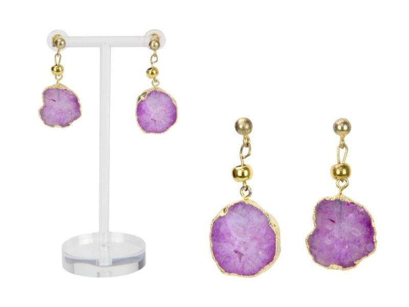 Purple Geode Earring Drop with 18K Plating - Qty of 4