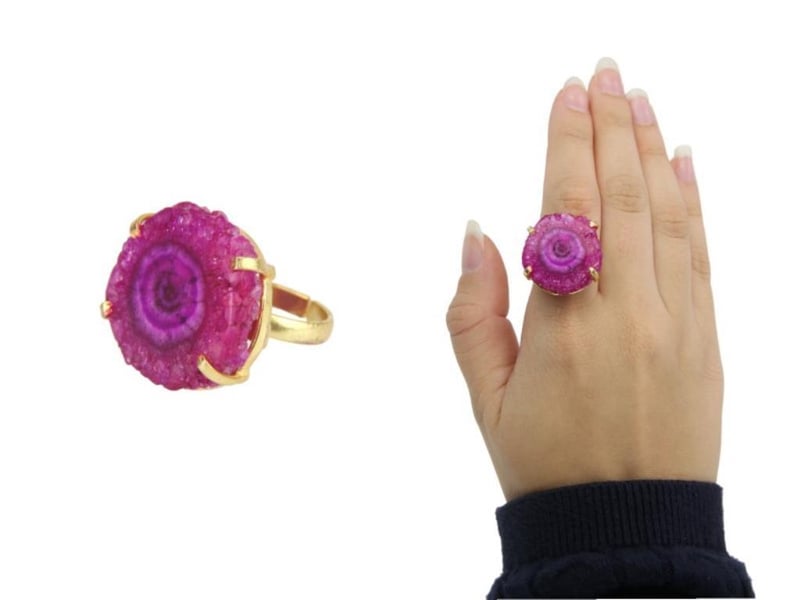 Pink Geode Adjustable Ring - Qty of 4 SOLD AS LOT