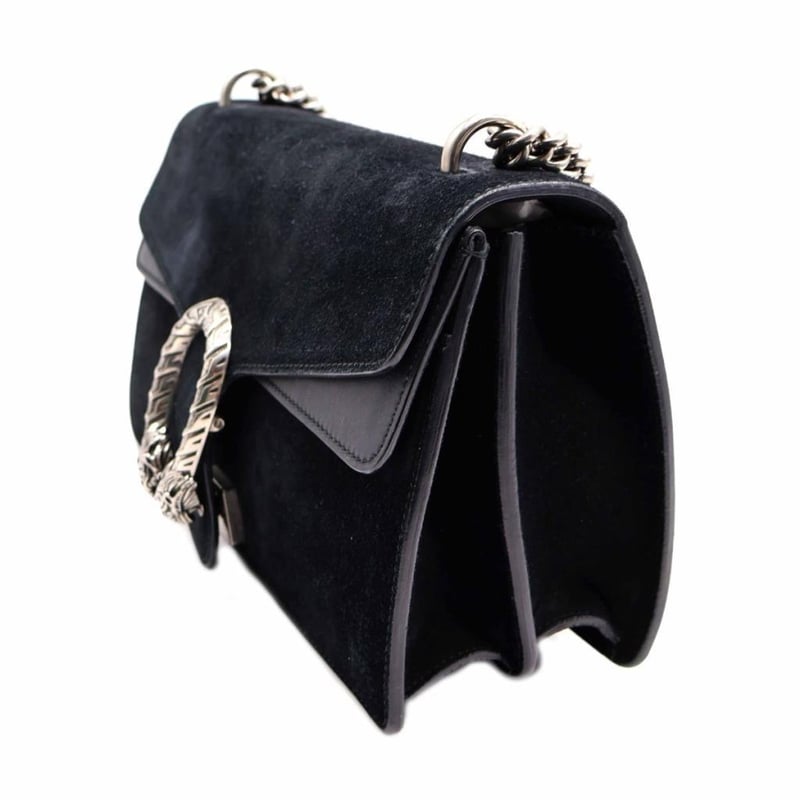 GUCCI VELVET SMALL DIONYSUS SHOULDER BAG BLACKItem Size: Height: 18cm, Width: 27cm, Depth: 9cmExterior MaterialVelvet And Leather With Silver-Tone Hardware, Single Chain-Link Shoulder Strap And Tiger Spur Snap Closure At Front.Interior MaterialLeather Lining With Two Main Compartments And A Center Zipped Compartment.Additional Condition Report- Moderate Sign Of Wear And Tears On Exterior- Moderate Scuffs And Wear In Interior- Sign Of Wear And Scratches On HardwareComes With- Certificate Of AuthenticityCondition: Good - Refer To ImagesCROSSDOCK162909+80