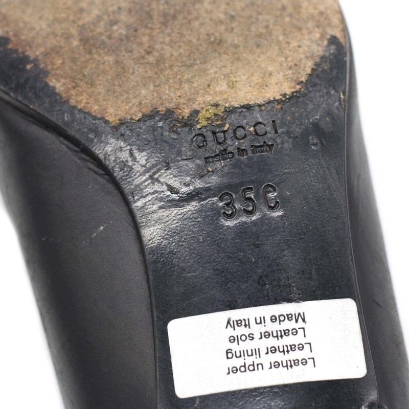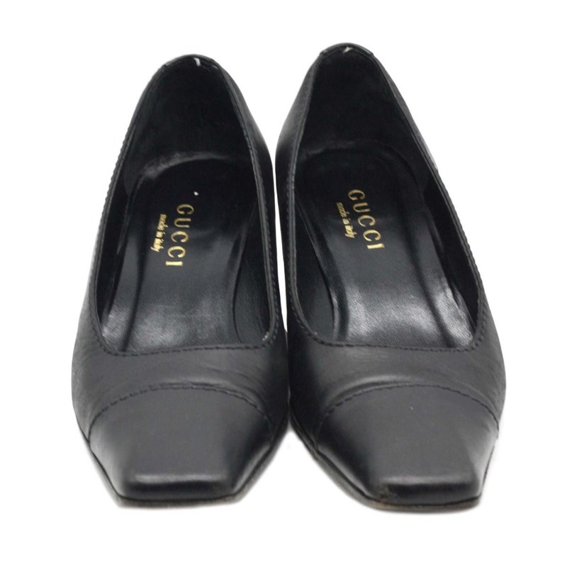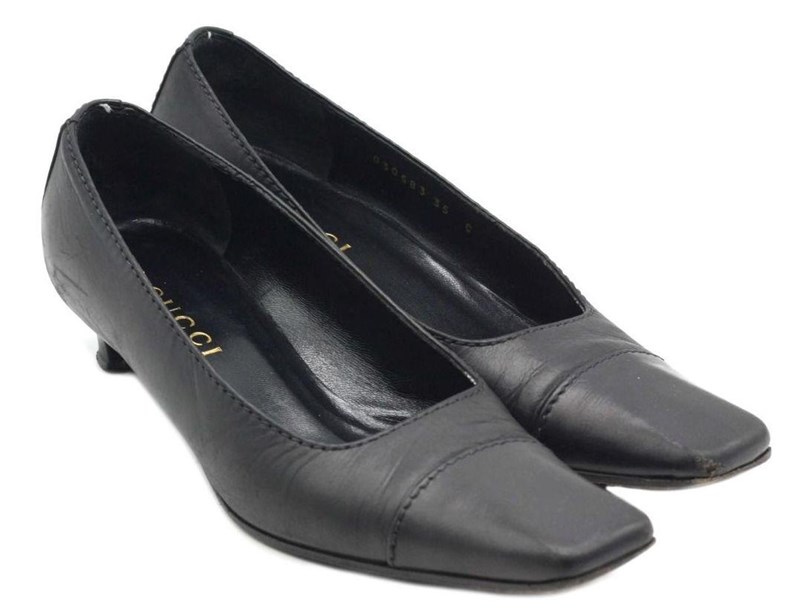 GUCCI BLACK LEATHER SQUARE TOE PUMPS SIZE 35 Crafted in Italy, these pumps are made from leather and are styled with square toes and kitten heels. Size: DESIGNER SIZE 35 Material Leather. Additional Condition Report - Visible wear, scuffs and tears on exterior and heels - Siginificant wear and creases on soles Comes With - Original Box - Certificate of Authenticity CROSSED DOCKED 155256+3