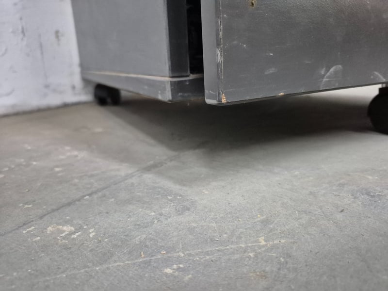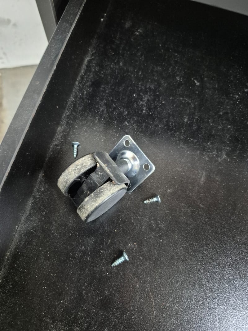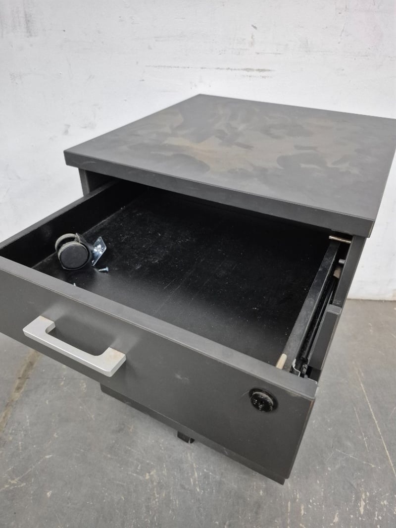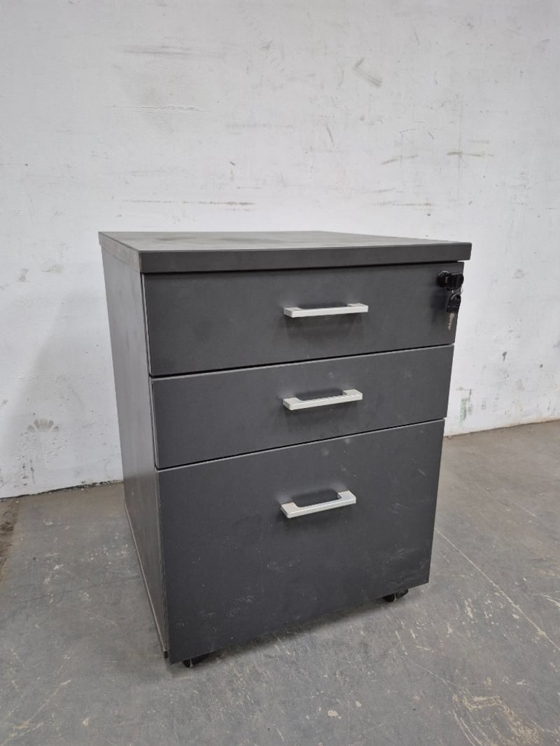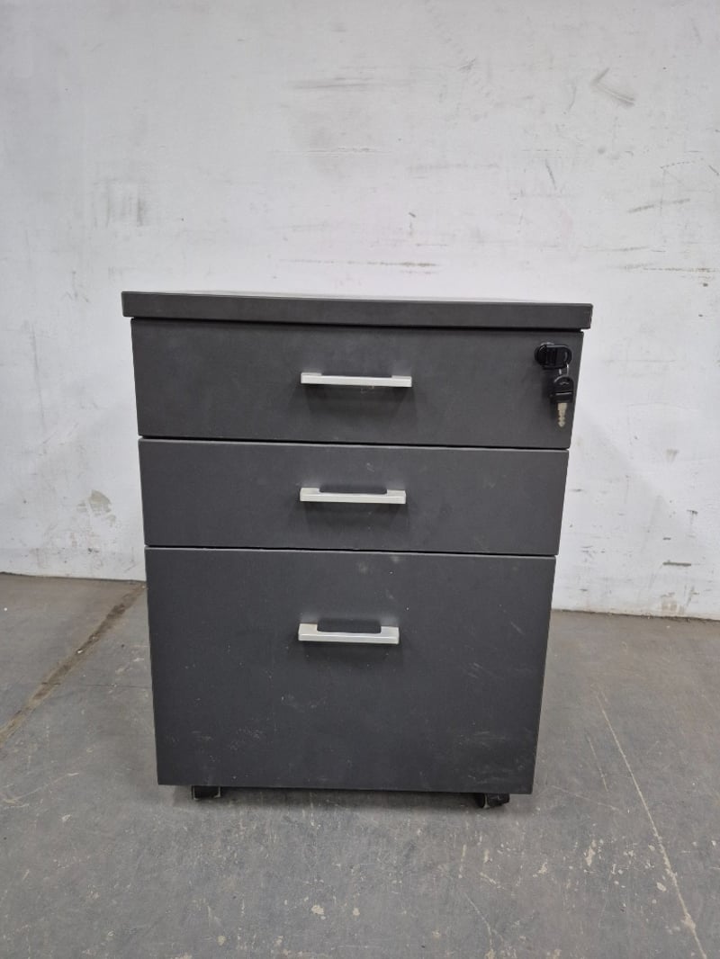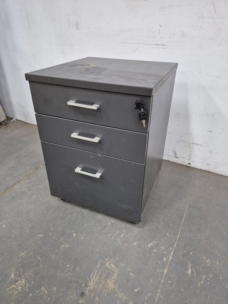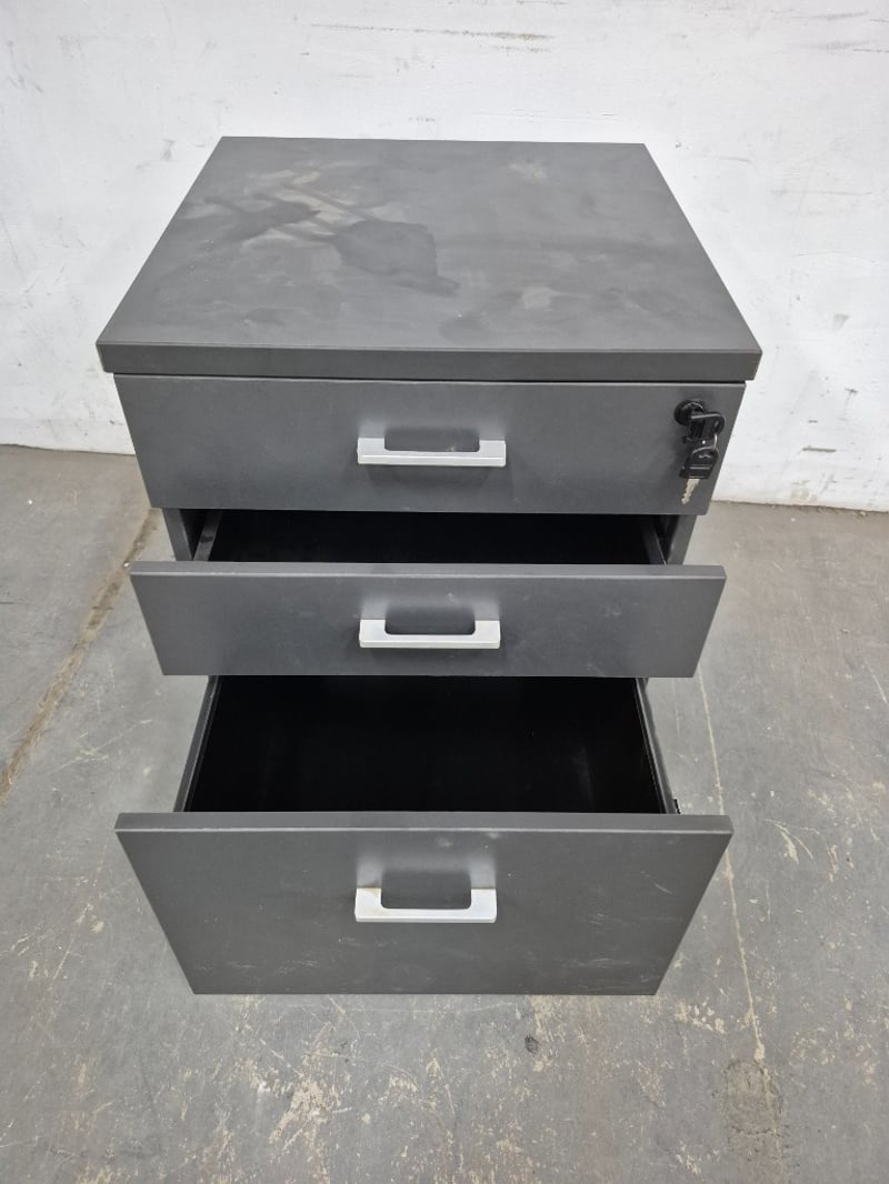 Drawers, Triple Tier, Desk Cabinet/ Drawers, Gray, Silver handles, missing wheel.