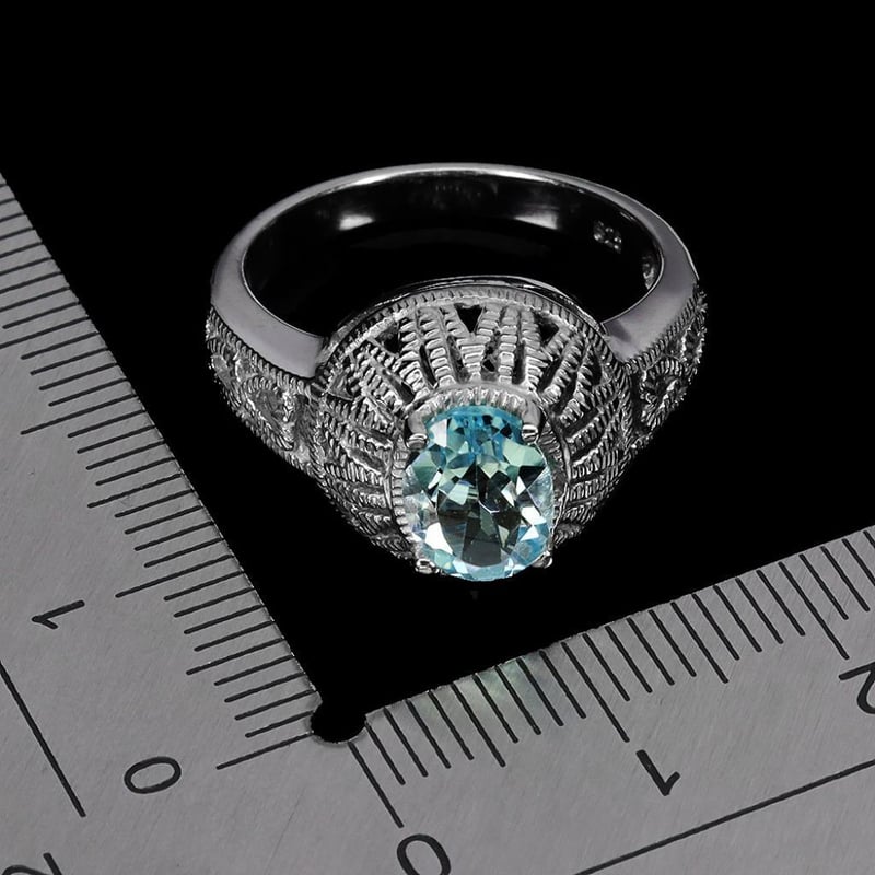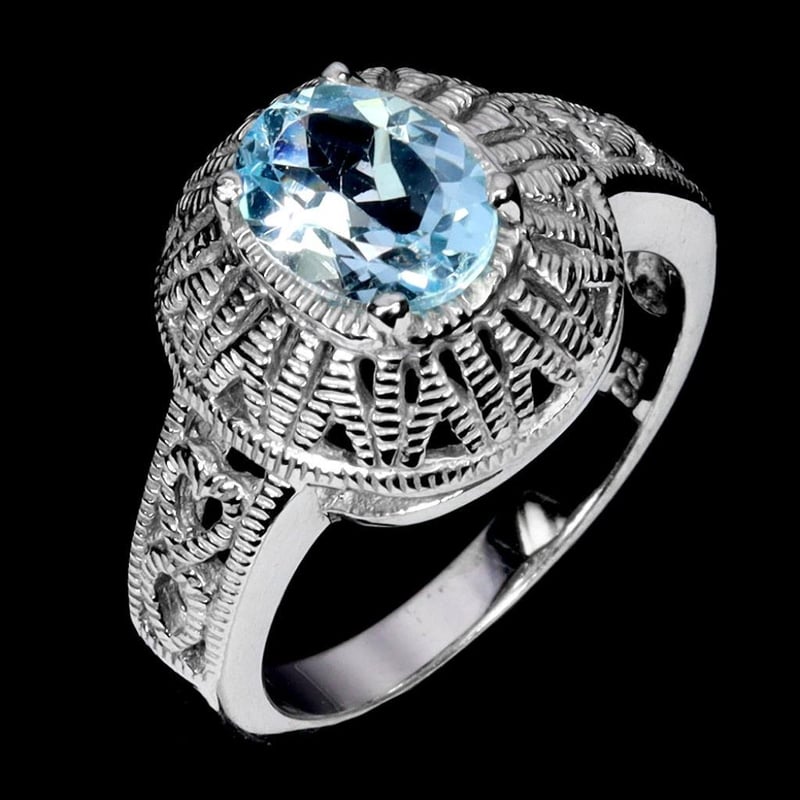 NATURAL SKY BLUE TOPAZ RING. Natural Sky Blue Topaz Ring. Made In Solid Sterling Silver And Plated In14K White Gold. Features Natural Oval Facet Sky Blue Topaz. Ring Size 8 Condition: Good - Refer Images 0488301+16