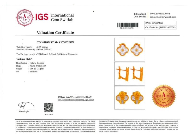 9CT YELLOW GOLD DIAMOND EARRINGS Date : 11/09/2025 Category: Earring Comment: 9Kyg Natural Diamond 1.06 Ct. (24 Pcs.) Item Weight : 6.97 G Condition: Good - Refer Images 253785 488284+253785
