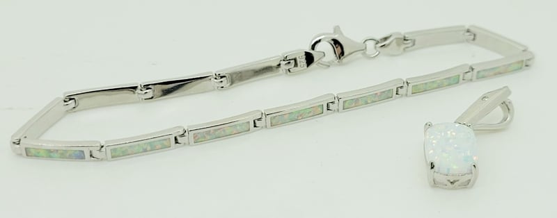 STERLING SILVER CREATED OPAL BRACELET AND PENDANT