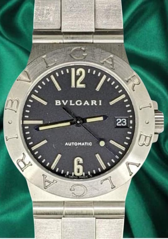 BVLGARI SPORTS LCV35S 1990 Price Guide - $2,500 - $4,000 PRODUCTION YEAR: 1990 DIAL: BLACK CASE DESCRIPTION: STEEL CASE SIZE: 35MM BRACELET: STEEL FOLDING CLASP MOVEMENT: AUTOMATIC BOX: NOT INCLUDED PAPERS: NOT INCLUDED Condition: Used - Refer Images Additional Information: Serial# L178*** SR