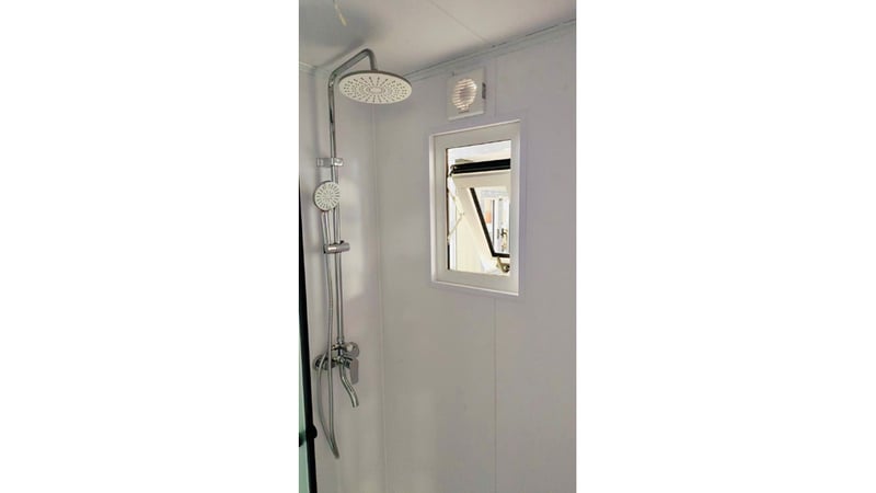 - Shower Hub with a rain maker shower head, vanity with sink and flick mixer, overhead cupboard with mirror, Toilet with soft close lid and exhaust fan