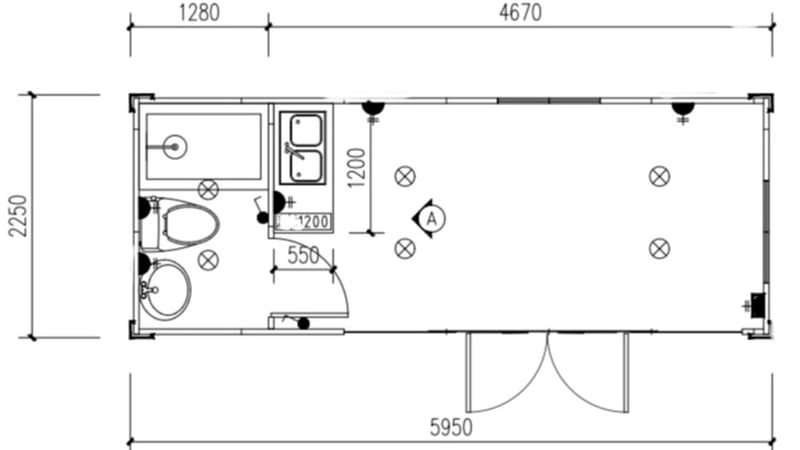 Approx Dimensions: 5850mm Long, 2250mm Wide, 2450mm High (external) - fits in a shipping container if required
