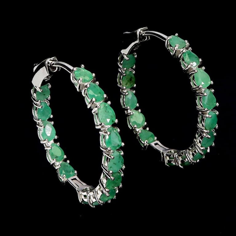 Natural Emerald Hoop Earrings. Made In Solid Sterling Silver And Plated In1 4K White Gold. Features Natural Green Emeralds. Earrings Measure 30.0 X 29.0 Mm.