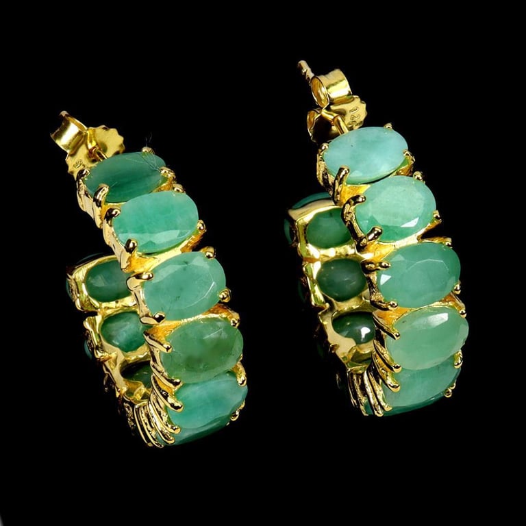 NATURAL EMERALD EARRINGS Natural Emerald Earrings. Made In Solid Sterling Silver And Plated In14K Yellow Gold. Features Natural Oval Facet Green Emeralds. Earrings Measure 27.0 X 22.0 Mm. Condition: Good - Refer Images 0488301+3