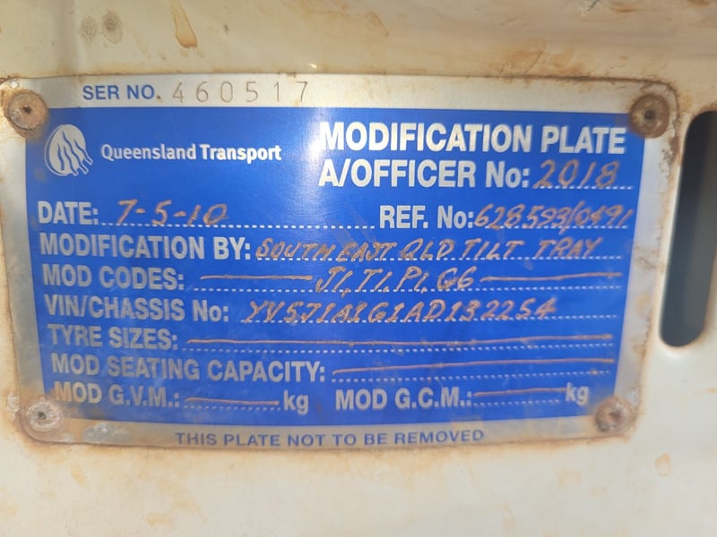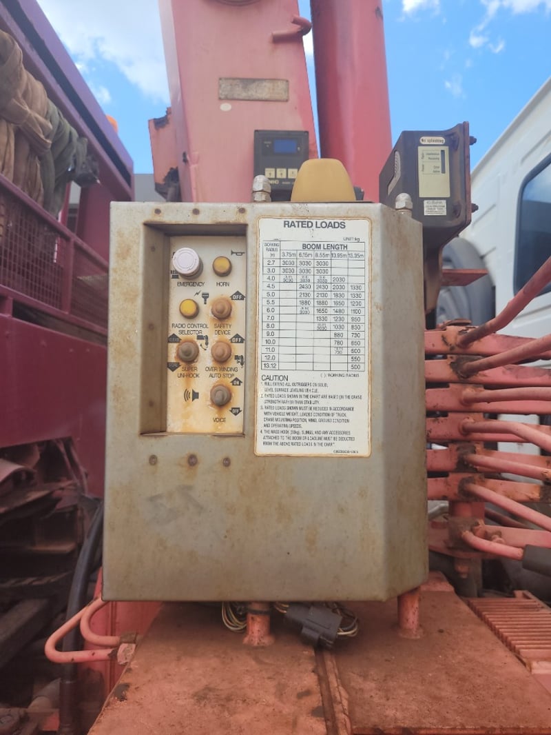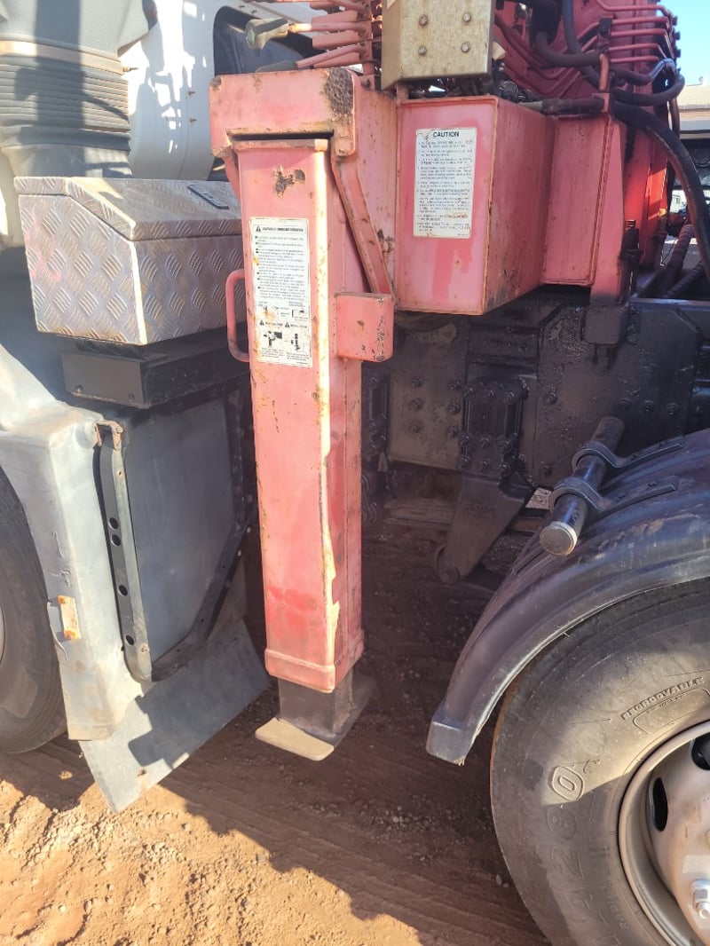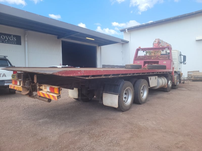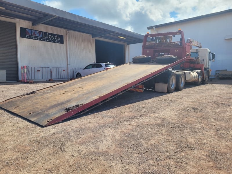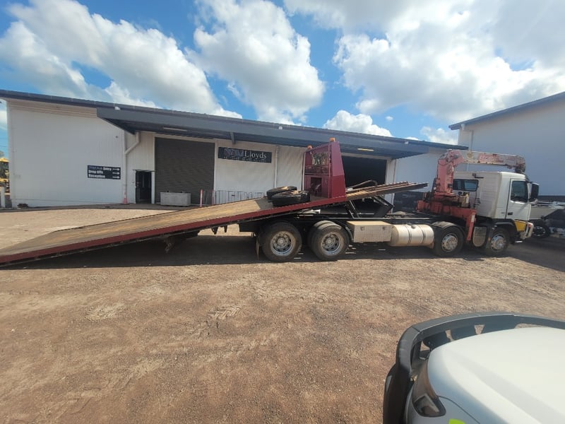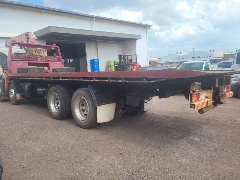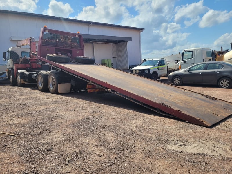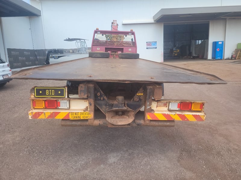 Description/Extras: Aircon, Power steering, Power windows, CD Player, UHF, Alloy Bull Bar, Wear and Tear with Some Rust. Electrical Problem with ABS, Crane out of Survey yet Operates (Remote not Working). Crane has 13m Reach (500kg @ 13m, 3 Tonne in close at 60 degrees). Broken Headlight yet 2 New Complete Headlight Units in Cab. New Seat Cover in Package, Toolboxes, Ring Feeder, Led Taillights, New Rear Main Seal Fitted 10/10/25. Beacon Lights and Load Lights. Tilt Tray is Remote/Manual Operated with a 15 Tonne Hydraulic Winch. New Rear Brakes. Very Good Rubber all round with 2 Spare Wheels, Ring Feeder, One owner from New.