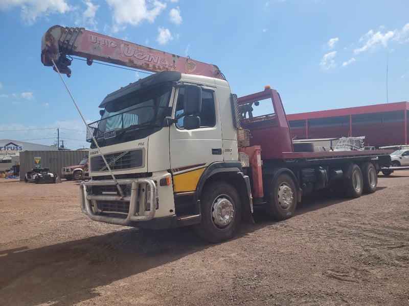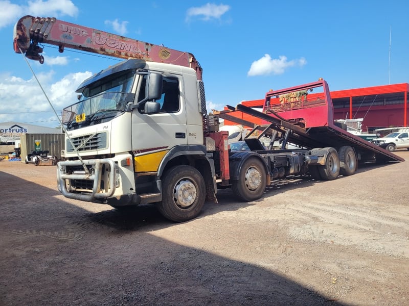 2010 Volvo FM 11 Flat Top Super Tilt Truck with Crane