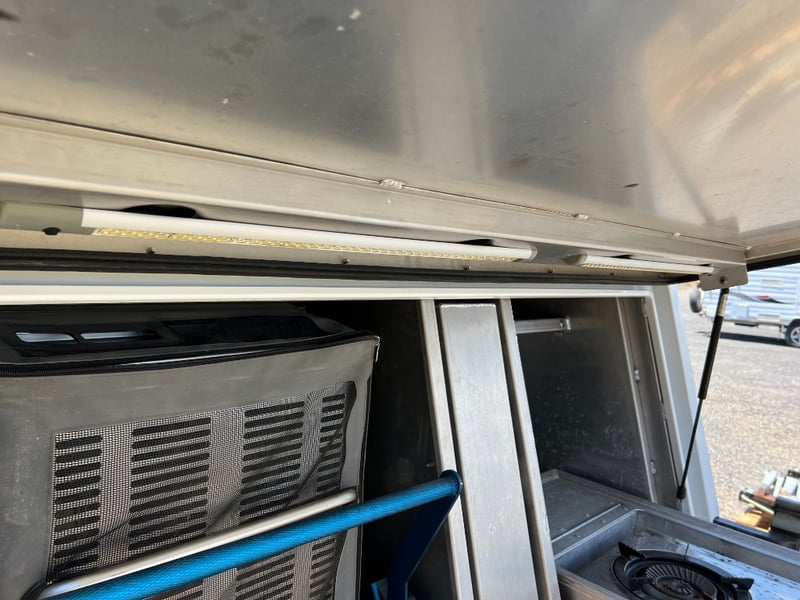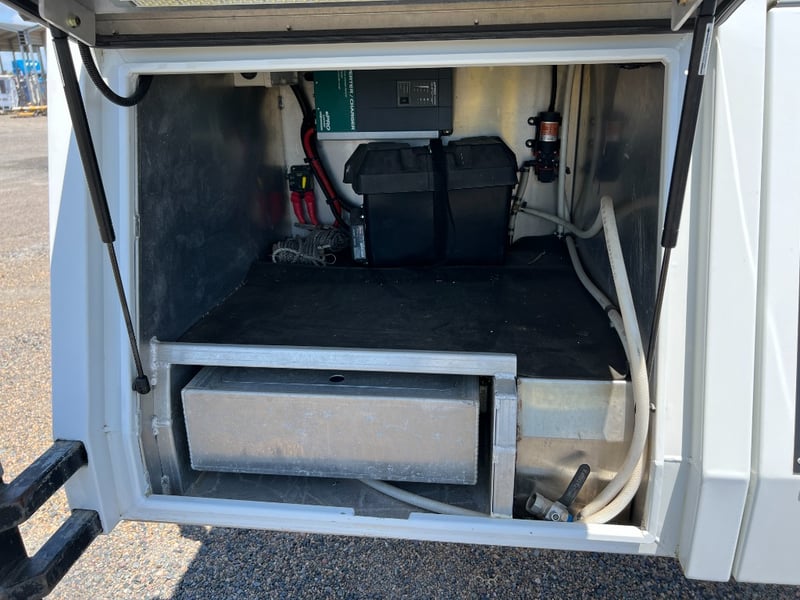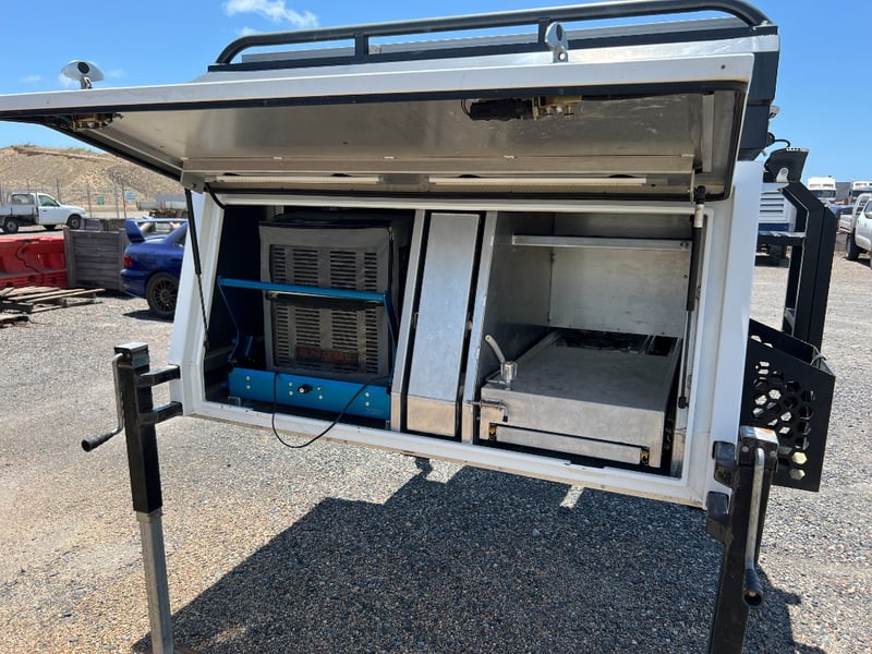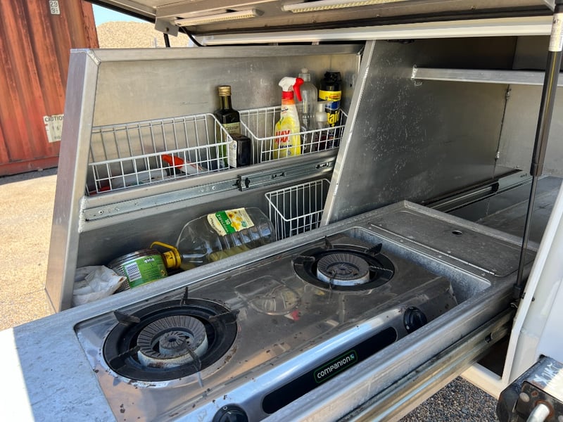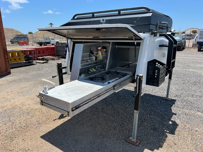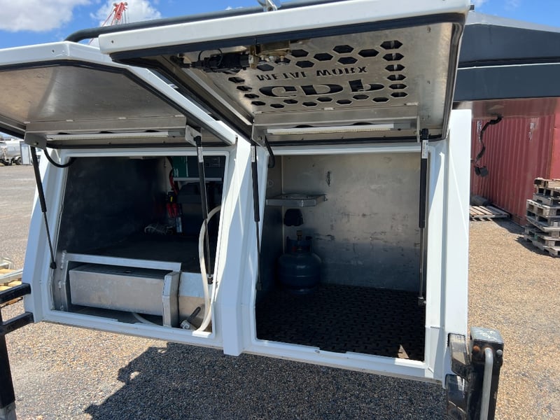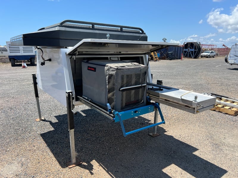80 Litre Engel Fridge, MSA Dop Down Fridge Slide, Pull Out Pantry, Pull Out Kitchen with Two Burner Gas Cooktop, Water Plumbed To Kitchen, 40Litre Stainless Water Tank, 100 Amp Hr Battery, Red Arc Bc-Dc Charger Solar, Ener-drive inverter/Charger, LED Lights Trough-out, 12v Outlets Throughout, 240v Outlets, Sirocco Fan, Dog Box/ Extra Storage Area, Clam-Shell Roof Top Tent, Has Four extra Legs.