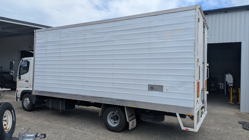 Description/ Extras: Set Up As Removal Truck, 50th Anniversary Hino, Reverse Camera, Button Seat Adjustment, Marks & Scratches, Displaying Engine Oil Change & Airdrier Change, Drivers Side Key Hole Broken, Silicon Used Around Pan Body, Pan Doors Seals Brittle & Broken