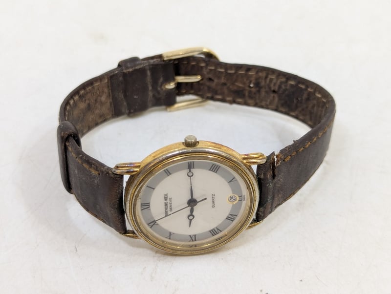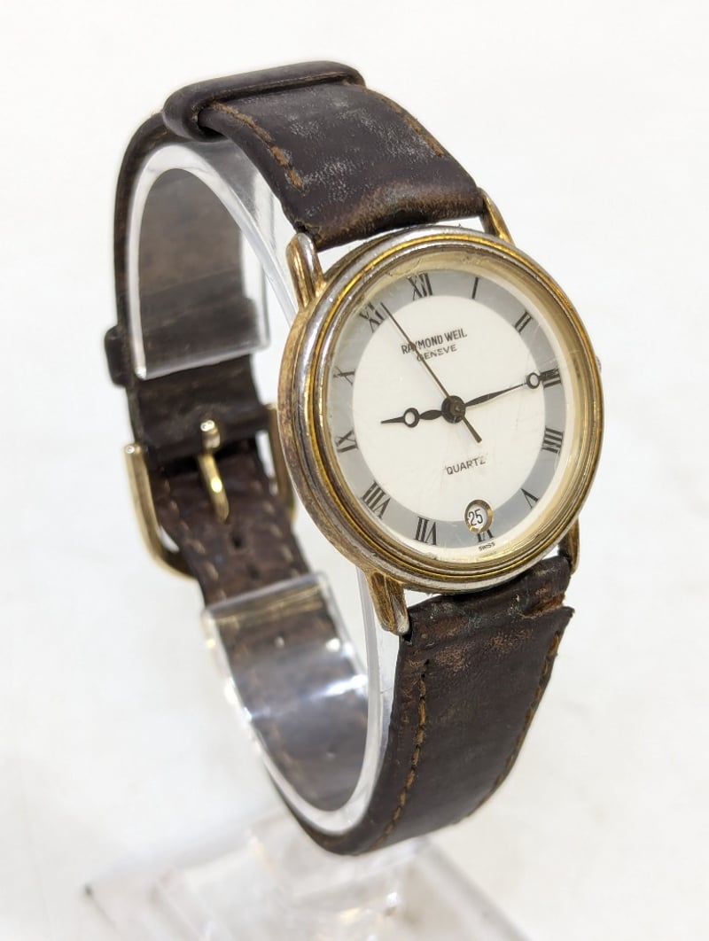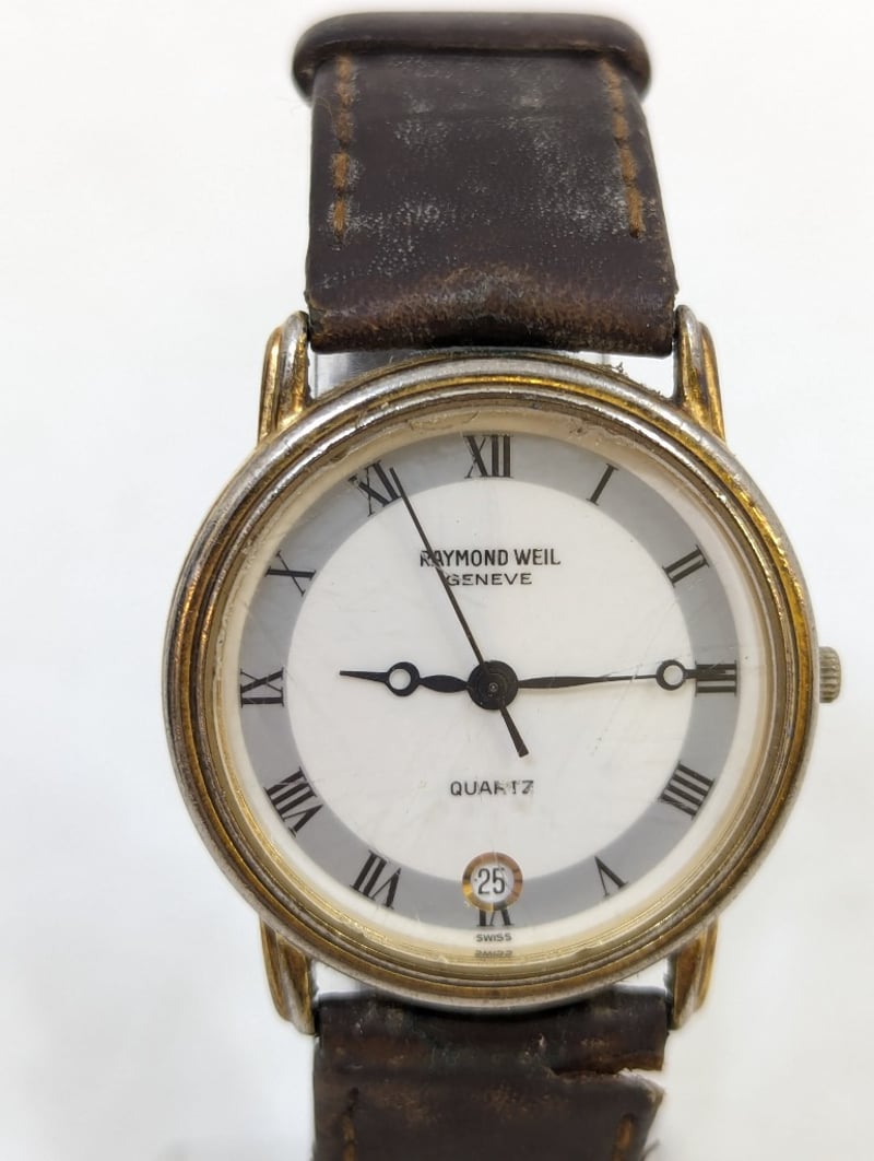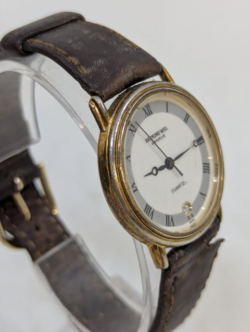 RAYMOND WEIL GENEVE 5532 REFERENCE NO. 5532DIAL: WHITE AND GREY DIALCASE DESCRIPTION: STAINLESS STEELCASE SIZE: 30MMBRACELET: LEATHER STYLEMOVEMENT: QUARTZBOX: NOT INCLUDEDPAPERS: NOT INCLUDEDAdditional Information: Roman Numeral Hour MarkersDate Display At 3 O'Clock PositionBuckle Clasp584956+3