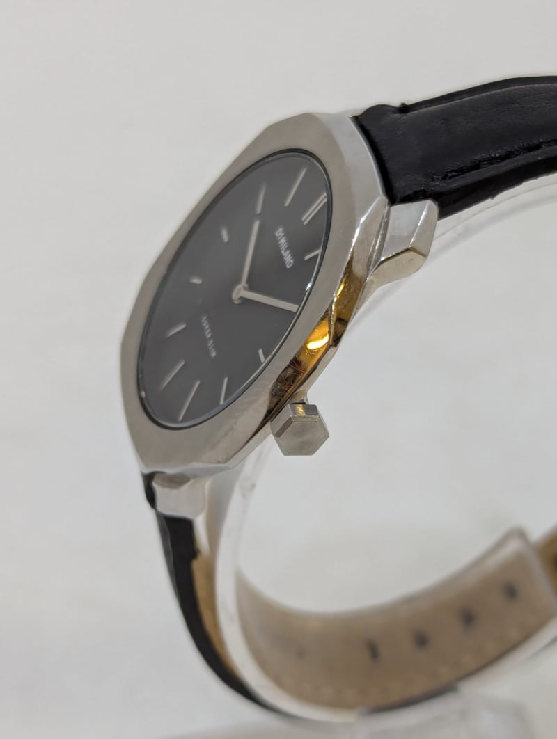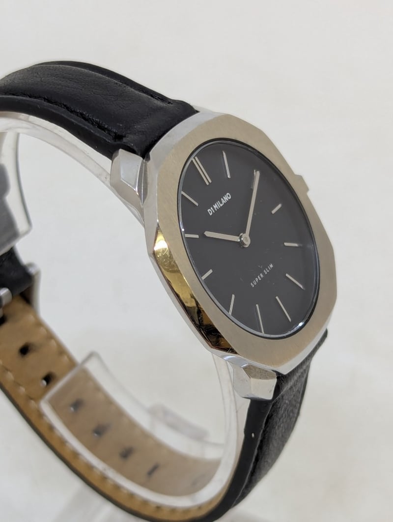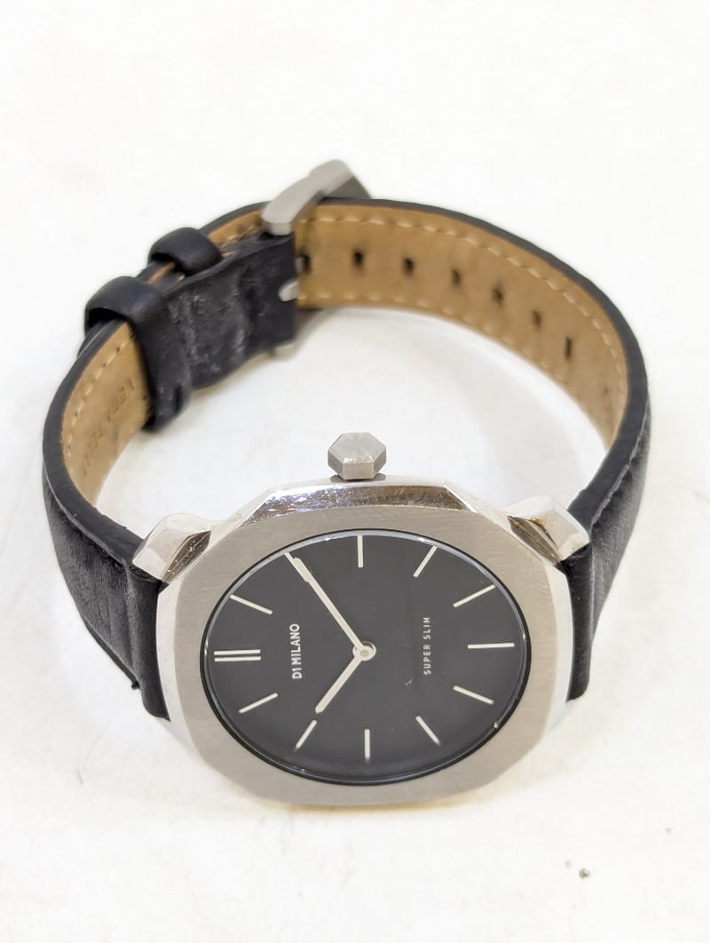 D1 MILANO SUPER SLIM DIAL: BLACK DIALCASE DESCRIPTION: STAINLESS STEELCASE SIZE: 36MMBRACELET: LEATHER STYLEBOX: NOT INCLUDEDPAPERS: NOT INCLUDEDAdditional Information: Non Numerical Hour MarkersBuckle ClaspMovement Untested584956+9