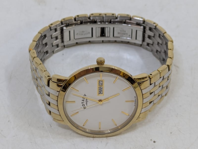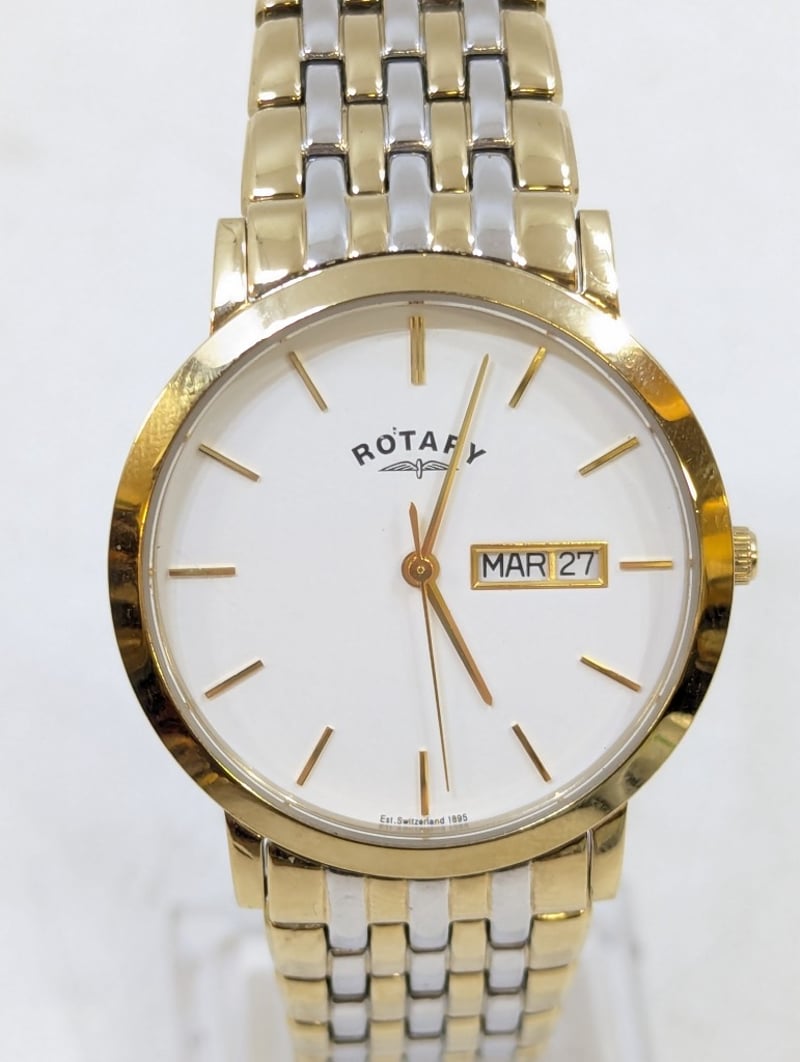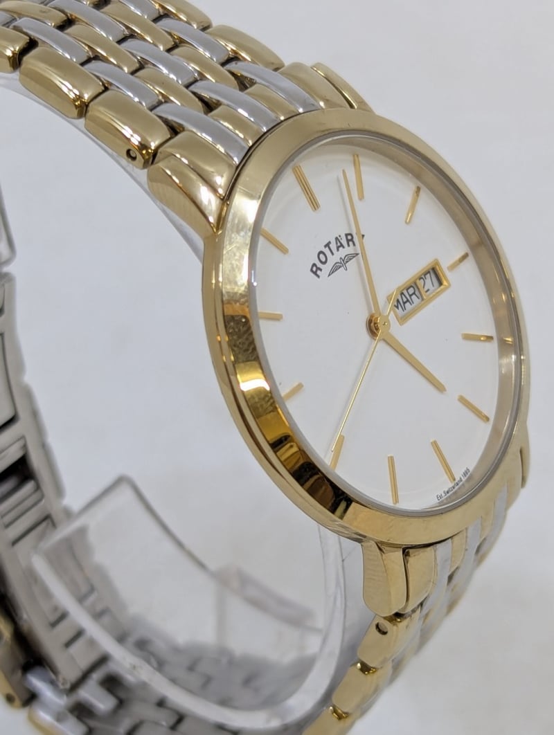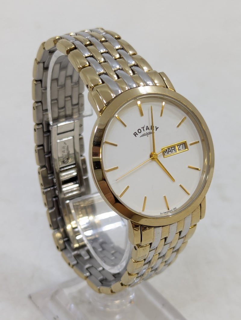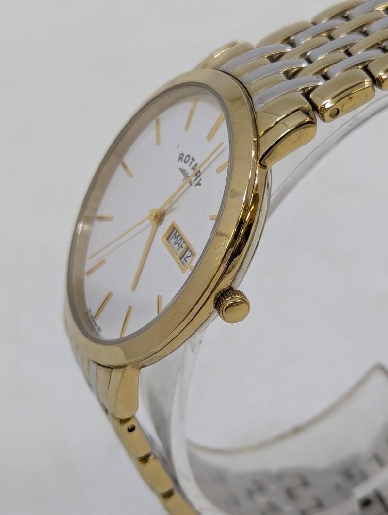 ROTARY WINDSOR CASE DESCRIPTION: STAINLESS STEELCASE SIZE: 36MMBRACELET: STAINLESS STEELBOX: NOT INCLUDEDPAPERS: NOT INCLUDEDAdditional Information: White DialNon Numerical Hour MarkerDate Display At 3 O'Clock Position584956+11