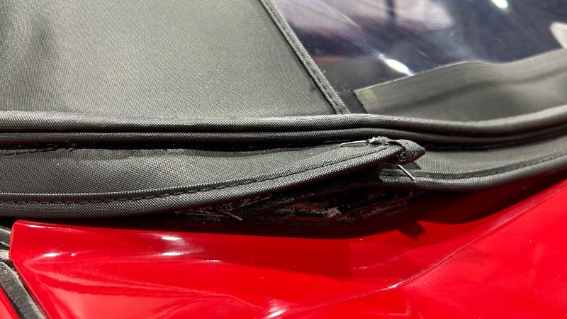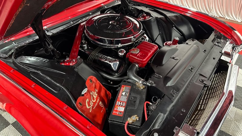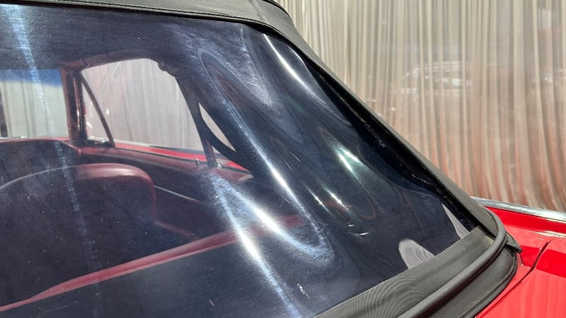 Additional features include a fully functional removable hardtop, power steering, original radio, and factory build plate confirming authentic specifications. Minor surface wear consistent with age is present, slight weathering on the convertible top seams, minor cosmetic blemishes in the engine bay, and light patina on undercarriage metal work. Inspection is recommended.