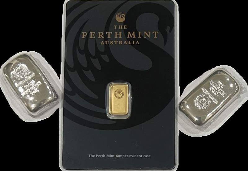 1 X PERTH MINT 1 GRAM GOLD SEALED & 2 X GERMANIA MINT 1 OUNCE SEALED BAR 23528+11