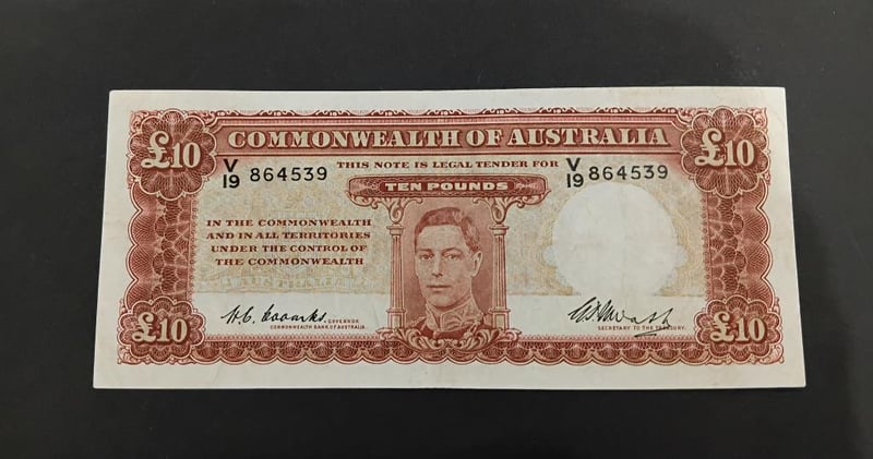 1949 10 Pound Notes (CV$1850 Ren 30th R60) Coombs Watt Rare. aEF Nice Grade