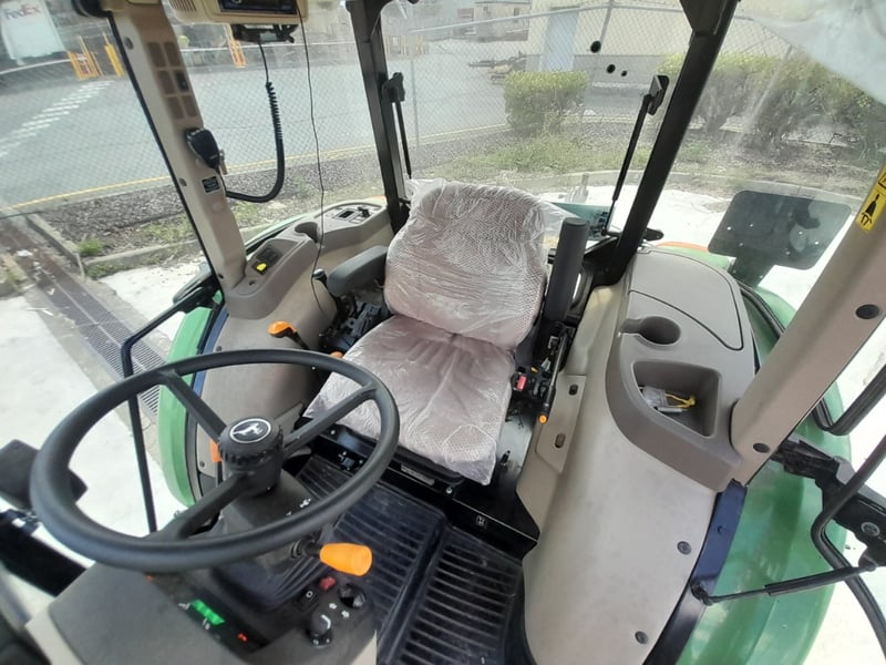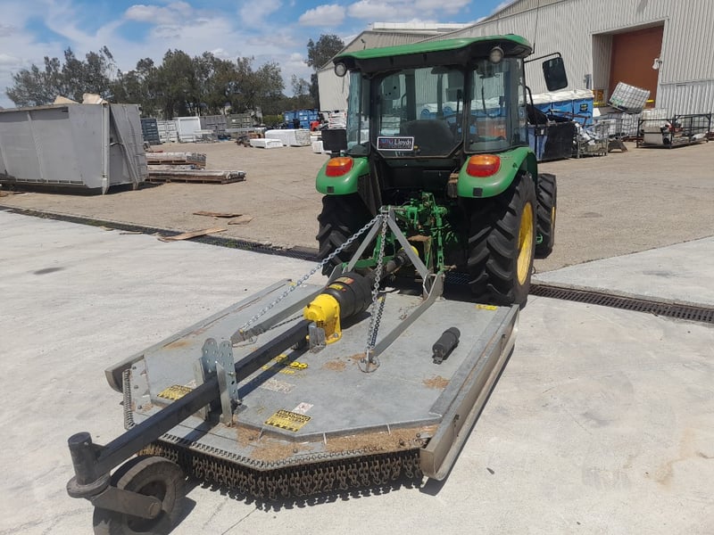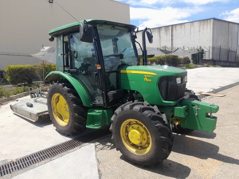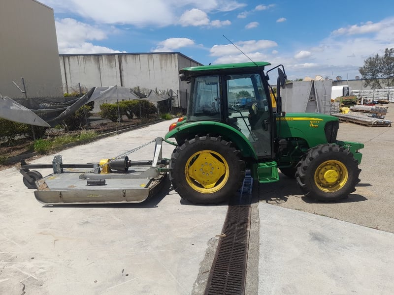 Discription: Green tractor, 2.9 litre 65 hp diesel engine, 4x4 MFWD 4WD, Differential lock- rear electro hydrolic wet disc, brakes- hydrolic wet disc, cab - standard cab with air conditioning, JVC CD player, UHF radio, twin entry points, comes with slasher 2.0m cutting width