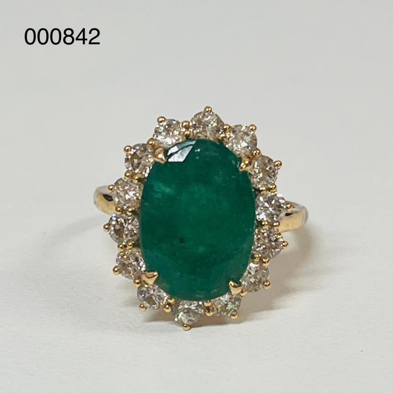 18CT YELLOW GOLD EMERALD AND DIAMOND RING