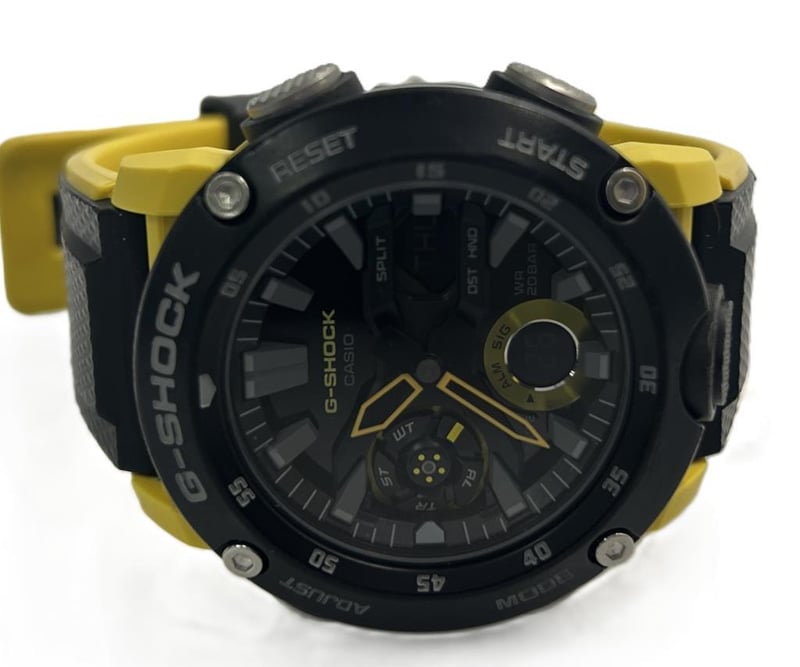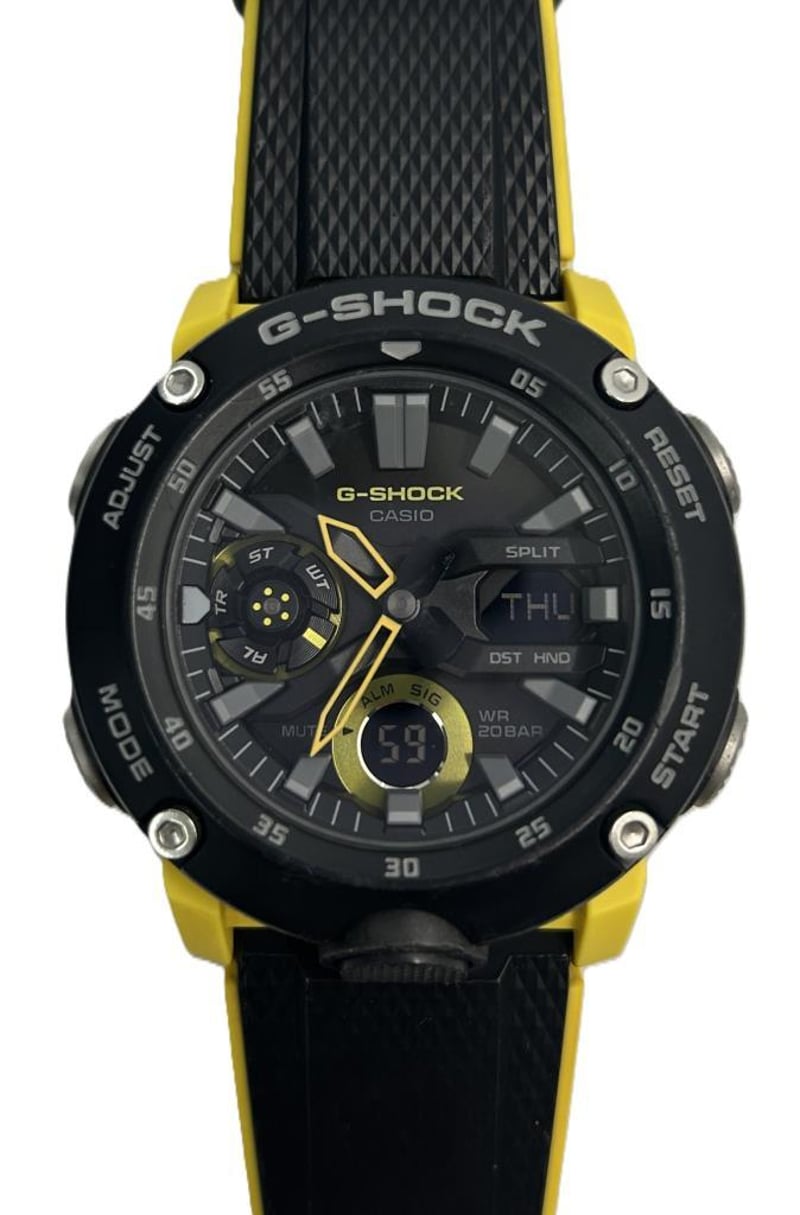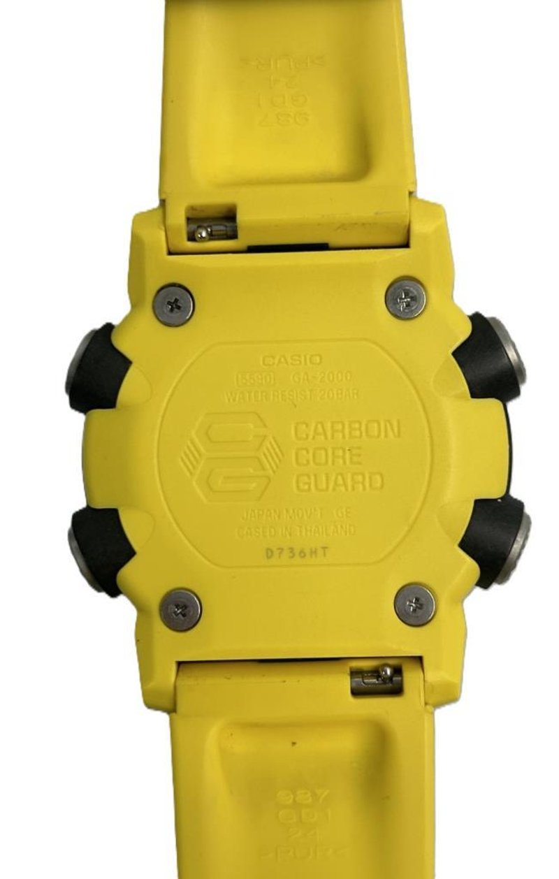 CASIO G-SHOCK CARBON CORE GUARD WATCH, MODEL GA-2000, BLACK AND YELLOW RESIN CASE WITH TEXTURED STRAP, BLACK DIAL WITH YELLOW ACCENTS AND DIGITAL DISPLAY, SHOCK RESISTANT, ANALOGUE-DIGITAL MOVEMENT, STOPWATCH, COUNTDOWN TIMER, WORLD TIME, ALARM, AND LED LIGHT, WATER RESISTANT TO 200M, CASE DIAMETER 46MM. EXCELLENT CONDITION WITH MINIMAL WEAR.Condition: Good - Refer To Images