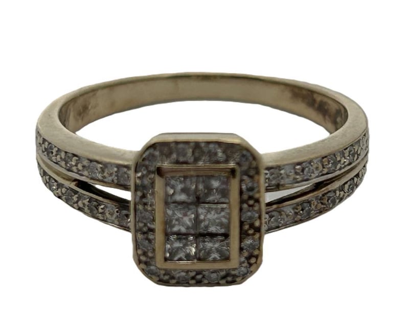 9CT YELLOW GOLD DIAMOND HALO RING, CENTRE 6 PRINCESS CUT DIAMONDS INVISIBLE SET SURROUNDED BY 16 ROUND BRILLIANT CUT DIAMONDS GRAIN SET WITH 8 ROUND BRILLIANT CUT DIAMONDS GRAIN SET INTO EACH SPLIT SHOULDER, ESTIMATE TOTAL DIAMOND WEIGHT 0.36CT, STAMP 375, RING WEIGHT 3.43 GRAMS. THIS ITEM HAS BEEN PROFESSIONALLY VERIFIED AS A GENUINE PRODUCT AND COMES WITH ACCOMPANYING 3RD PARTY CERTIFICATE OF AUTHENTICITYCondition: Good - Refer To Images