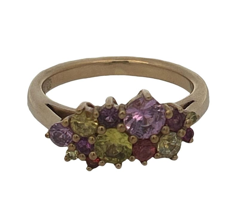 9CT YELLOW GOLD MULTICOLOUR SAPPHIRE CLUSTER RING, 13 ROUND CUT SAPPHIRES SHARED CLAW SET (5X YELLOW 6X PINK 2X ORANGE GEMSTONES), STAMP 375, RING WEIGHT 4.33 GRAMS. THIS ITEM HAS BEEN PROFESSIONALLY VERIFIED AS A GENUINE PRODUCT AND COMES WITH ACCOMPANYING 3RD PARTY CERTIFICATE OF AUTHENTICITYCondition: Good - Refer To Images