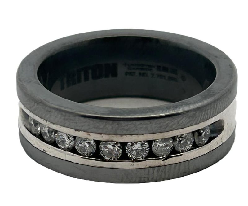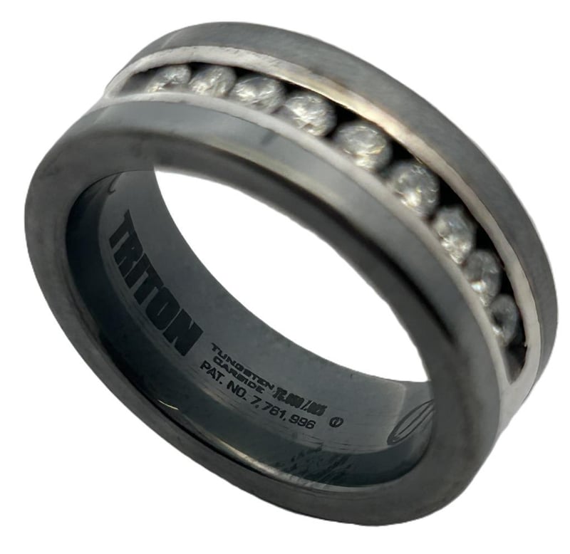 TUNGSTEN CARBIDE 0.54CT DIAMOND BAND WITH STERLING SILVER INLAY, 9 ROUND BRILLIANT CUT DIAMONDS CHANNEL SET IN ROW, ESTIMATE TOTAL DIAMOND WEIGHT 0.54CT, STAMP TUNGSTEN CARBIDE/925, RING WEIGHT 17.8 GRAMS. THIS ITEM HAS BEEN PROFESSIONALLY VERIFIED AS A GENUINE PRODUCT AND COMES WITH ACCOMPANYING 3RD PARTY CERTIFICATE OF AUTHENTICITYCondition: Good - Refer To Images
