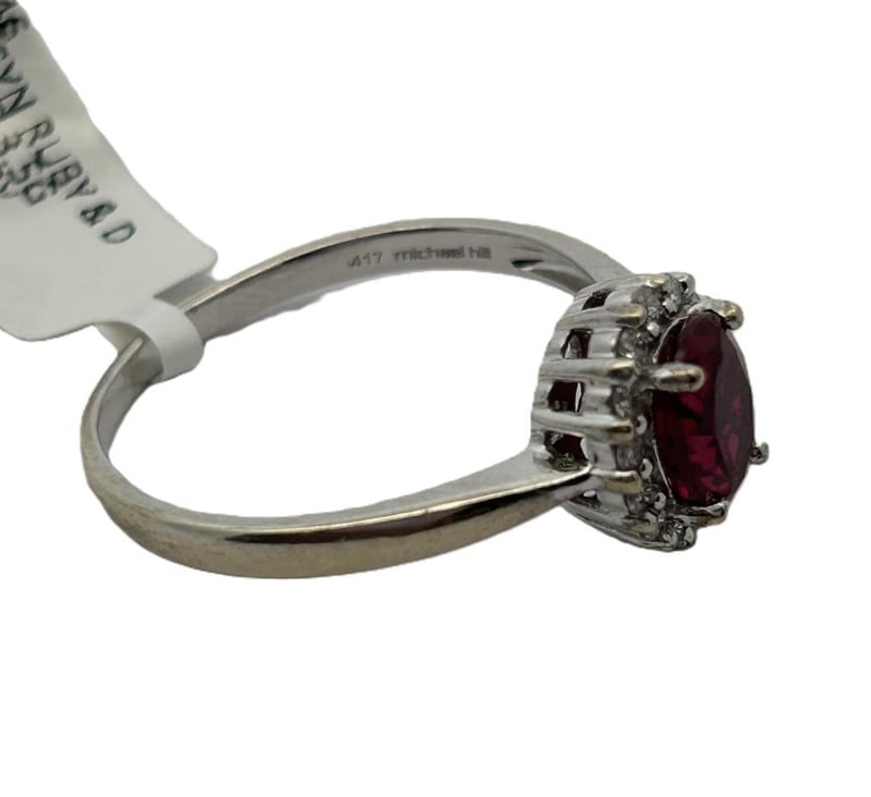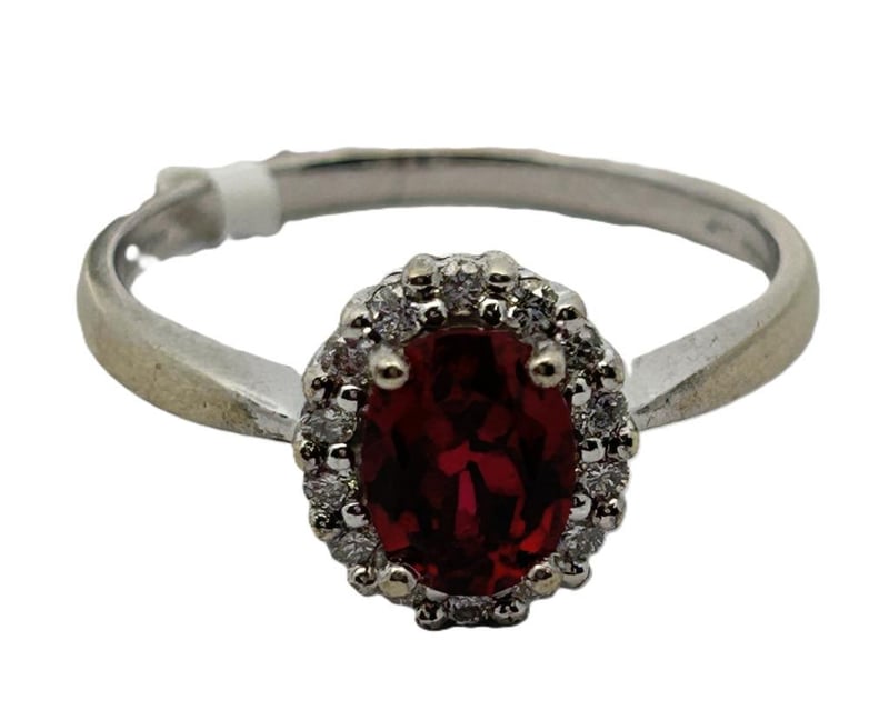 10CT WHITE GOLD RUBY & 0.25CT DIAMOND HALO RING, OVAL CUT SYNTHETIC RUBY 4 CLAW SET SURROUND BY 14 ROUND BRILLIANT CUT DIAMONDS CUT DOWN CLAW SET, ESTIMATE TOTAL DIAMOND WEIGHT 0.25CT, STAMP CR 417, RING WEIGHT 3.5 GRAMS. THIS ITEM HAS BEEN PROFESSIONALLY VERIFIED AS A GENUINE PRODUCT AND COMES WITH ACCOMPANYING 3RD PARTY CERTIFICATE OF AUTHENTICITYCondition: Good - Refer To Images
