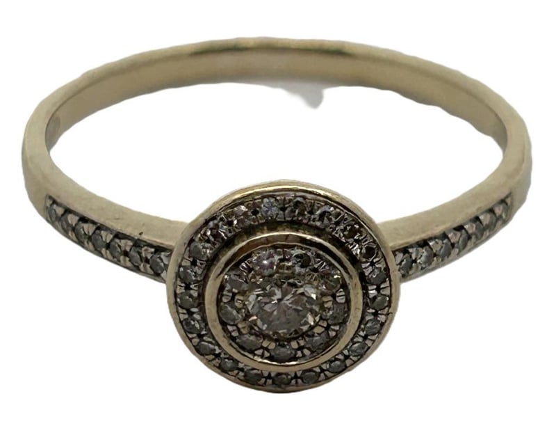 9CT YELLOW GOLD 0.31CT DIAMOND HALO RING, 10 ROUND BRILLIANT CUT DIAMONDS GRAIN SET IN CENTRE SURROUNDED BY 21 ROUND BRILLIANT CUT DIAMONDS CUT DOWN CLAW SET WITH 7 ROUND BRILLIANT CUT DIAMONDS CUT DOWN CLAW SET ON EACH SHOULDER, TOTAL ESTIMATE DIAMOND WEIGHT 0.32CT, STAMP 375, RING WEIGHT 2.14 GRAMS. THIS ITEM HAS BEEN PROFESSIONALLY VERIFIED AS A GENUINE PRODUCT AND COMES WITH ACCOMPANYING 3RD PARTY CERTIFICATE OF AUTHENTICITYCondition: Good - Refer To Images
