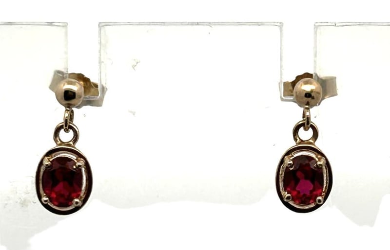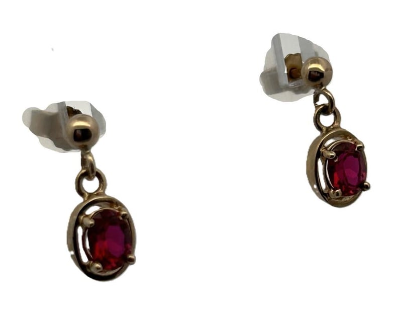 9CT YELLOW GOLD RUBY DROP EARRINGS, EACH EARRINGS INCLUDES AN OVAL CUT SYNTHETIC RUBY 4 CLAW SET WITH STEM & BUTTERFLY FITTINGS, STAMP 375, TOTAL WEIGHT 1.55 GRAMS. THIS ITEM HAS BEEN PROFESSIONALLY VERIFIED AS A GENUINE PRODUCT AND COMES WITH ACCOMPANYING 3RD PARTY CERTIFICATE OF AUTHENTICITYCondition: Good - Refer To Images
