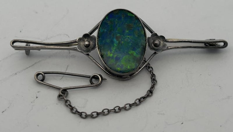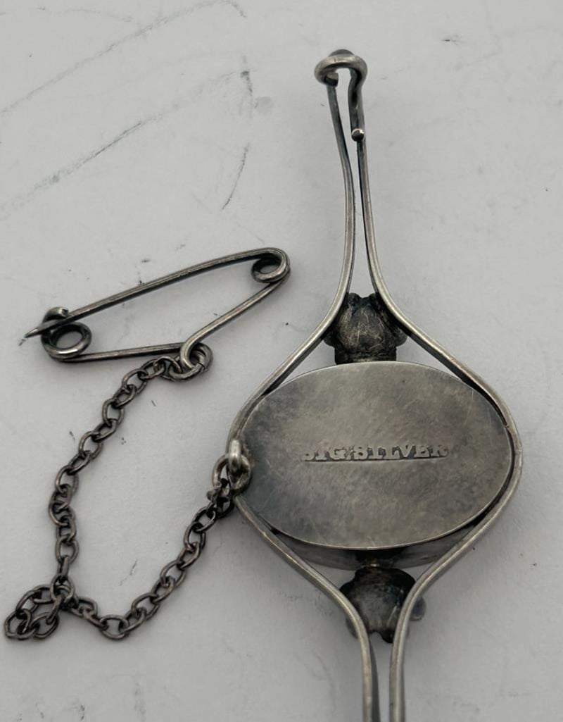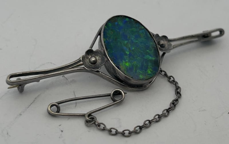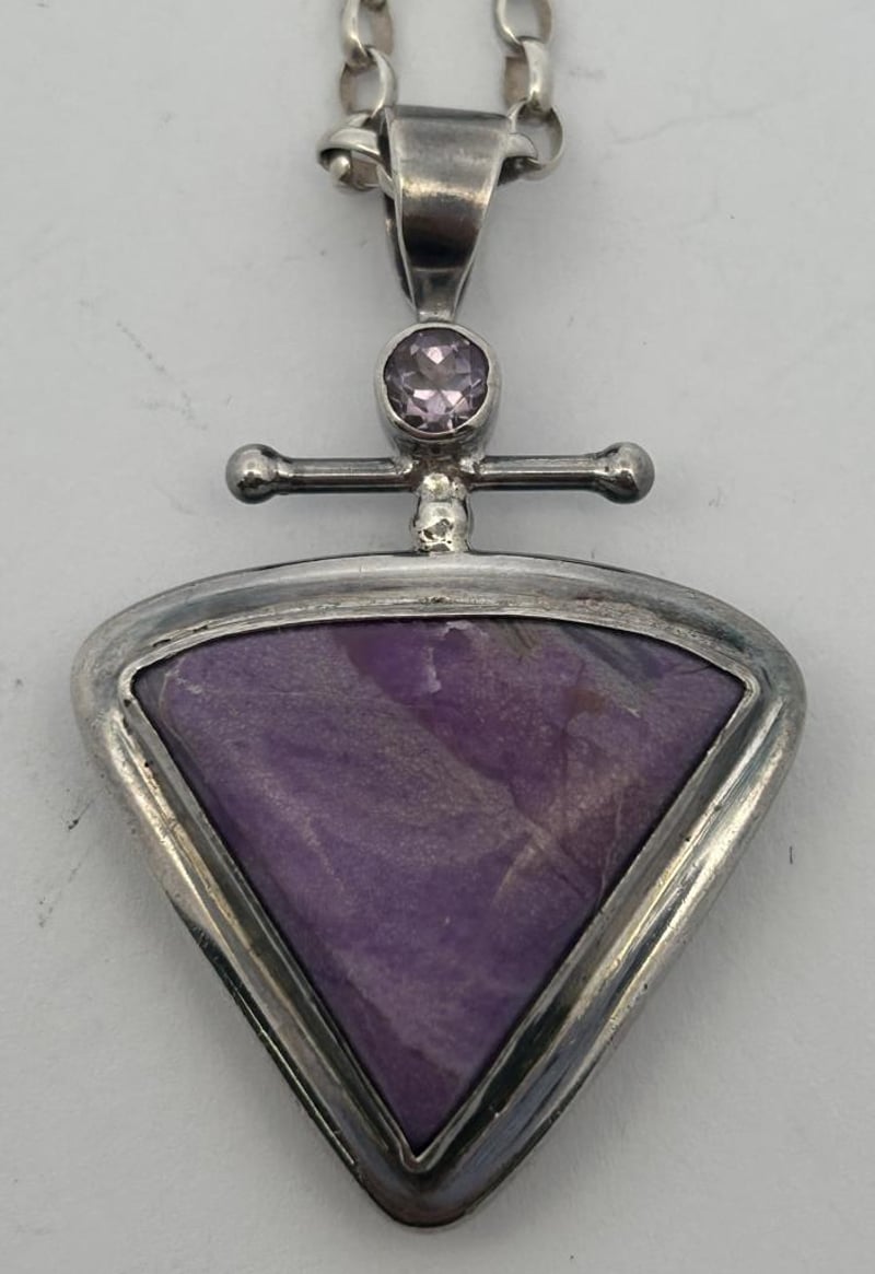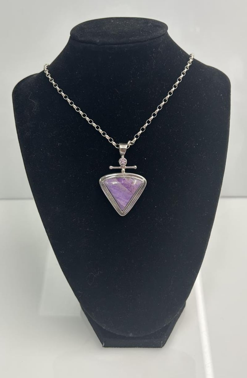 STERLING SILVER JEWELLERY LOT, COMPRISING A TRIANGULAR AMETHYST PENDANT ON A SILVER CHAIN WITH CROSS-STYLE BAIL, A PINK HEART LOCKET BRACELET WITH DECORATIVE LINK CHAIN, A BLUE-GREEN OPAL DOUBLET BROOCH IN AN OVAL BEZEL SETTING, AND A BLACK ENAMEL FAN-SHAPED BROOCH WITH ETCHED SILVER DETAILING. ALL PIECES ARE CRAFTED IN STERLING SILVER, TESTED AND MARKED 925 STERLING, WITH MINOR WEAR CONSISTENT WITH AGE AND SECURE STONES AND CLASPS. A TOTAL COMBINED WEIGHT 74.0 GRAMS.Condition: Good - Refer To Images