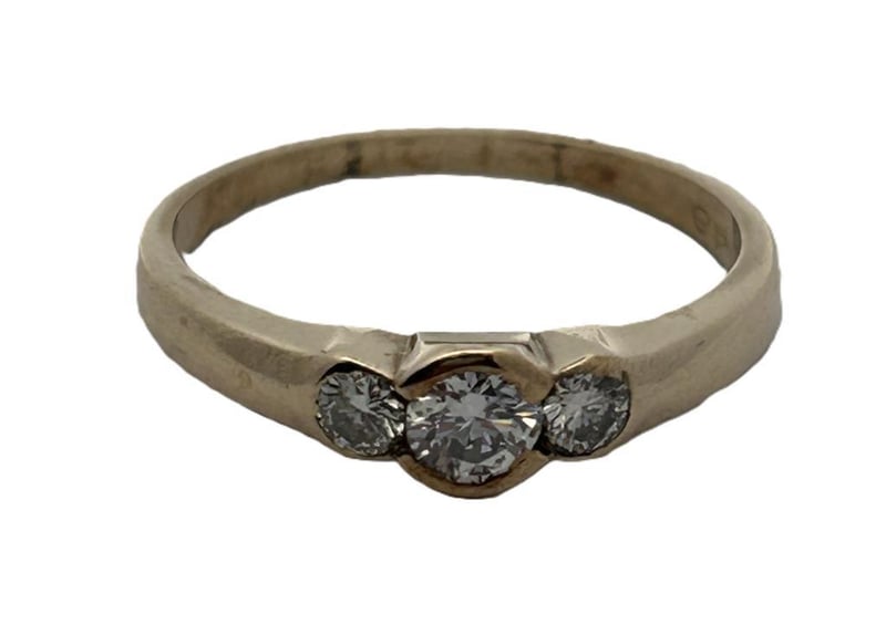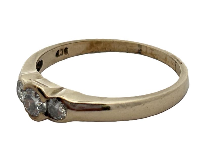 9CT YELLOW GOLD TRIO DIAMOND RING, CENTRE ROUND BRILLIANT CUT DIAMOND PART RUB OVER SET WITH 1 ROUND BRILLIANT CUT DIAMONDS EITHER SIDE, ESTIMATE TOTAL DIAMOND WEIGHT 0.45CT, STAMP 9CT, RING WEIGHT 1.93 GRAMS. THIS ITEM HAS BEEN PROFESSIONALLY VERIFIED AS A GENUINE PRODUCT AND COMES WITH ACCOMPANYING 3RD PARTY CERTIFICATE OF AUTHENTICITYCondition: Good - Refer To Images