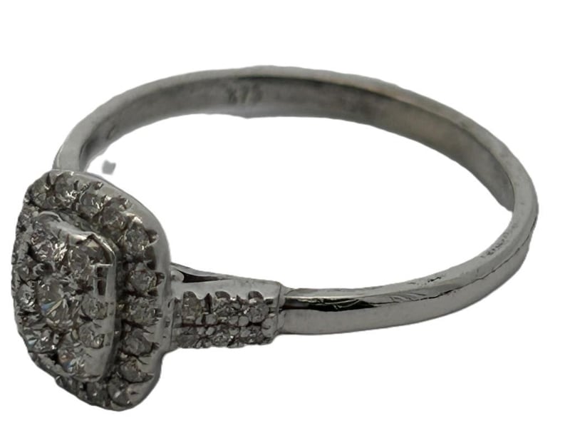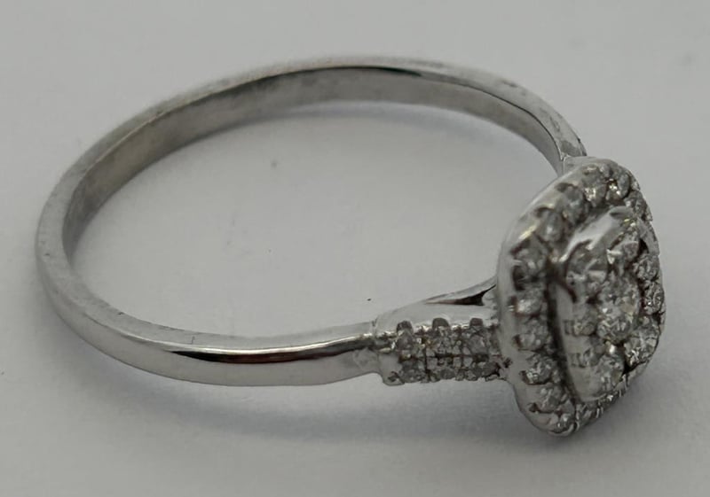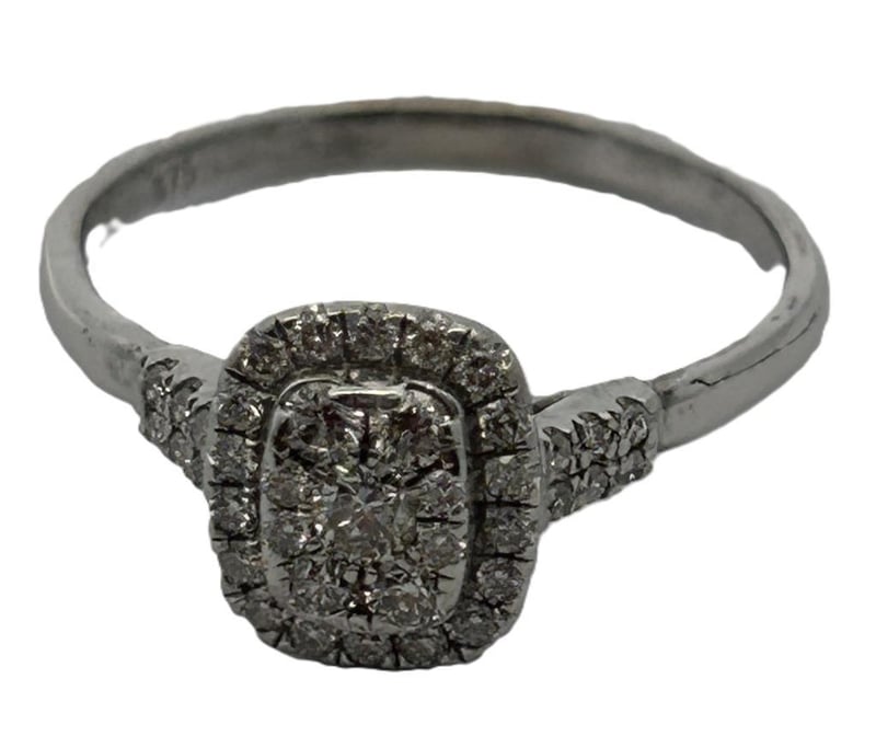9CT WHITE GOLD 0.50CT DIAMOND HALO RING, 9 ROUND BRILLIANT CUT DIAMONDS SHARED CLAW SET IN CENTRE SURROUNDED BY 18 ROUND BRILLIANT CUT DIAMONDS CUT DOWN CLAW SET WITH 6 ROUND BRILLIANT CUT DIAMONDS CLAW SET ON EACH SHOULDER, ESTIMATE TOTAL DIAMOND WEIGHT 0.50CT, STAMP 375, RING WEIGHT 2.2 GRAMS. THIS ITEM HAS BEEN PROFESSIONALLY VERIFIED AS A GENUINE PRODUCT AND COMES WITH ACCOMPANYING 3RD PARTY CERTIFICATE OF AUTHENTICITYCondition: Good - Refer To Images