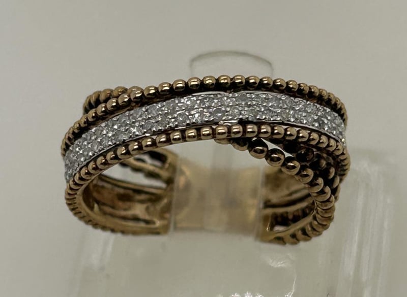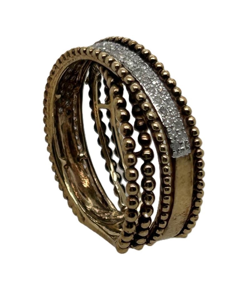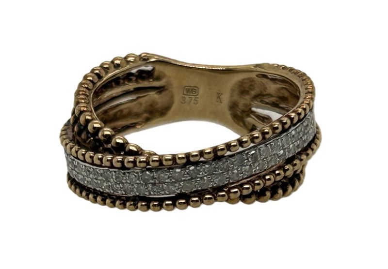 9CT YELLOW GOLD 0.12CT DIAMOND SPLIT CROSS-OVER BAND, 24 ROUND BRILLIANT CUT DIAMONDS GRAIN SET IN TWO ROWS, TOTAL DIAMOND WEIGHT 0.12CT (ESTIMATE), STAMP 375, TOTAL WEIGHT 3.55 GRAMS. THIS ITEM HAS BEEN PROFESSIONALLY VERIFIED AS A GENUINE PRODUCT AND COMES WITH ACCOMPANYING 3RD PARTY CERTIFICATE OF AUTHENTICITY