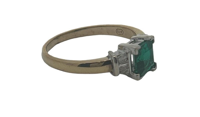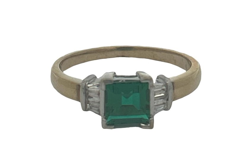 9CT YELLOW GOLD SYNTHETIC EMERALD & DIAMOND CLUSTER RING, SQUARE CUT EMERALD 4 CORNER CAP SET WITH 4 BAGUETTE CUT DIAMONDS CHANNEL SET IN EACH SHOULDER, ESTIMATE TOTAL DIAMOND WEIGHT 0.24CT, STAMP 375, RING WEIGHT 3.07 GRAMS. THIS ITEM HAS BEEN PROFESSIONALLY VERIFIED AS A GENUINE PRODUCT AND COMES WITH ACCOMPANYING 3RD PARTY CERTIFICATE OF AUTHENTICITYCondition: Good - Refer To Images
