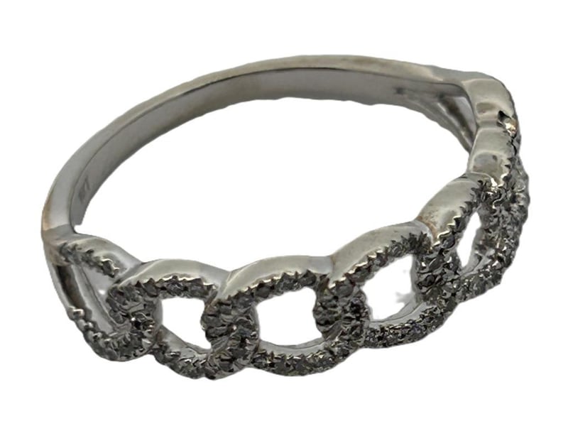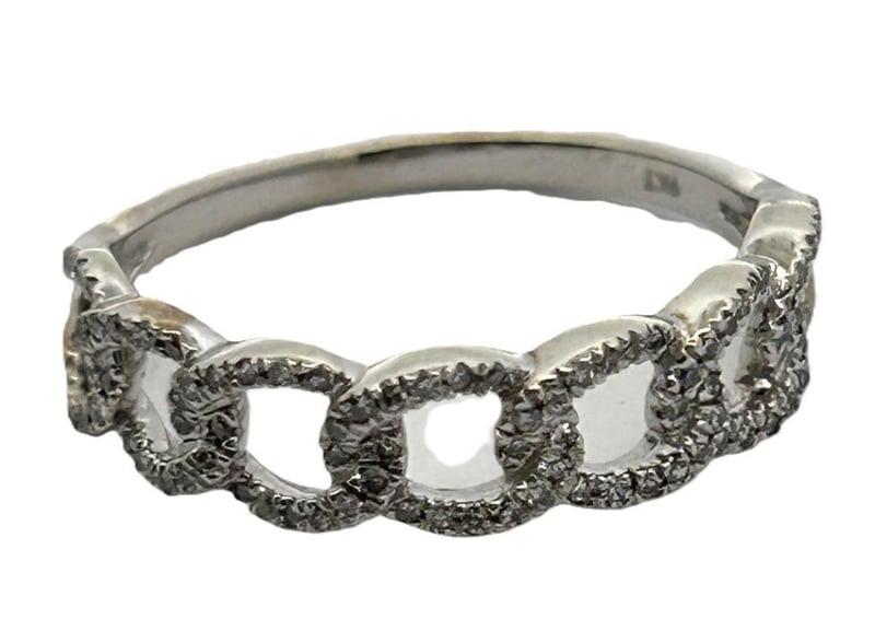 9CT YELLOW GOLD 0.27CT DIAMOND CHAIN RING, 92 ROUND BRILLIANT CUT DIAMONDS GRAIN SET IN 7 LOOPS IN CHAIN DESIGN, ESTIMATE TOTAL DIAMOND WEIGHT 0.27CT, STAMP 375, RING WEIGHT 1.57 GRAMS. THIS ITEM HAS BEEN PROFESSIONALLY VERIFIED AS A GENUINE PRODUCT AND COMES WITH ACCOMPANYING 3RD PARTY CERTIFICATE OF AUTHENTICITY